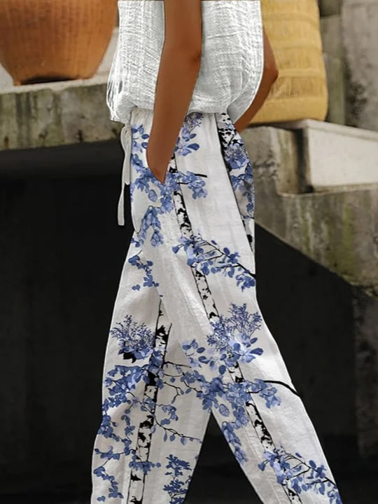 Women's H-Line Baggy Pants Daily Going Out Pants White Casual Printing Floral Spring/Fall Pants