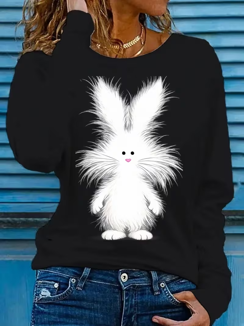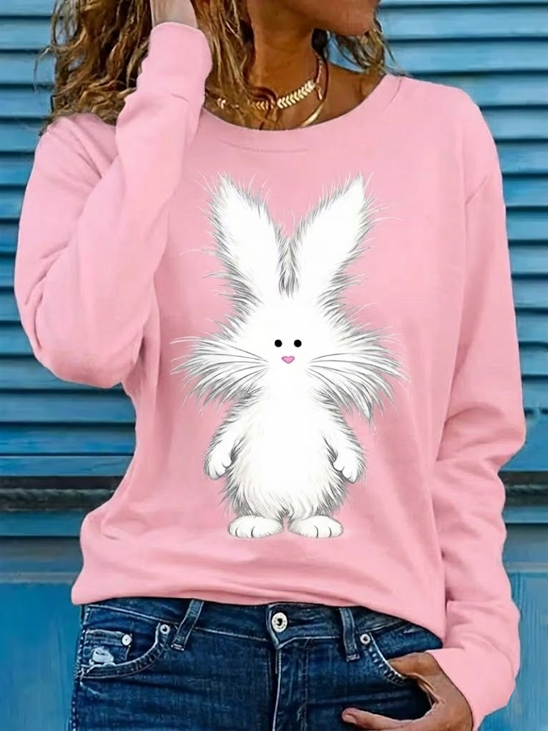 Women's Long Sleeve T-shirt Spring/Fall Pink Easter (rabbit) Printing Jersey Crew Neck Daily Going Out Casual Top