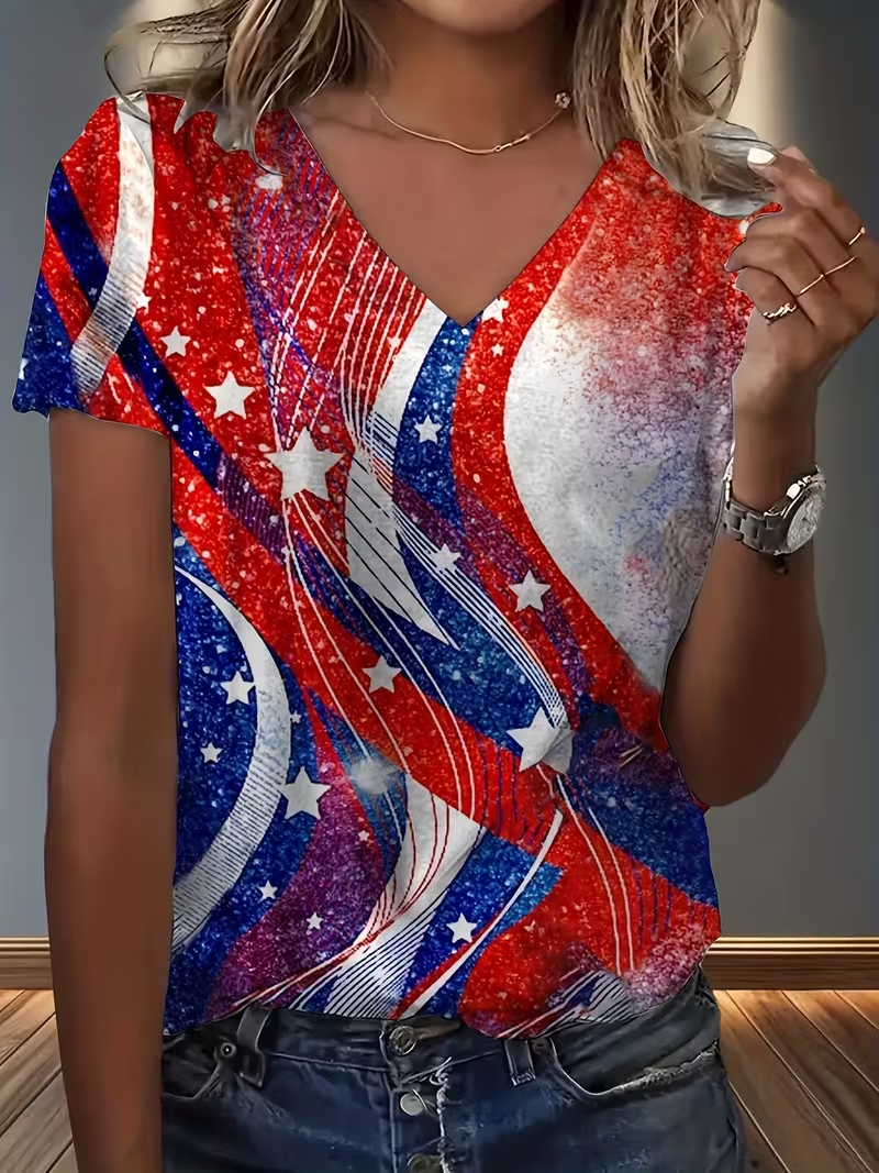 Women's 250th Anniversary Of The Founding Of the United States Short Sleeve V Neck 3D Printing Star Independence Day Daily Going Out Casual T-Shirt
