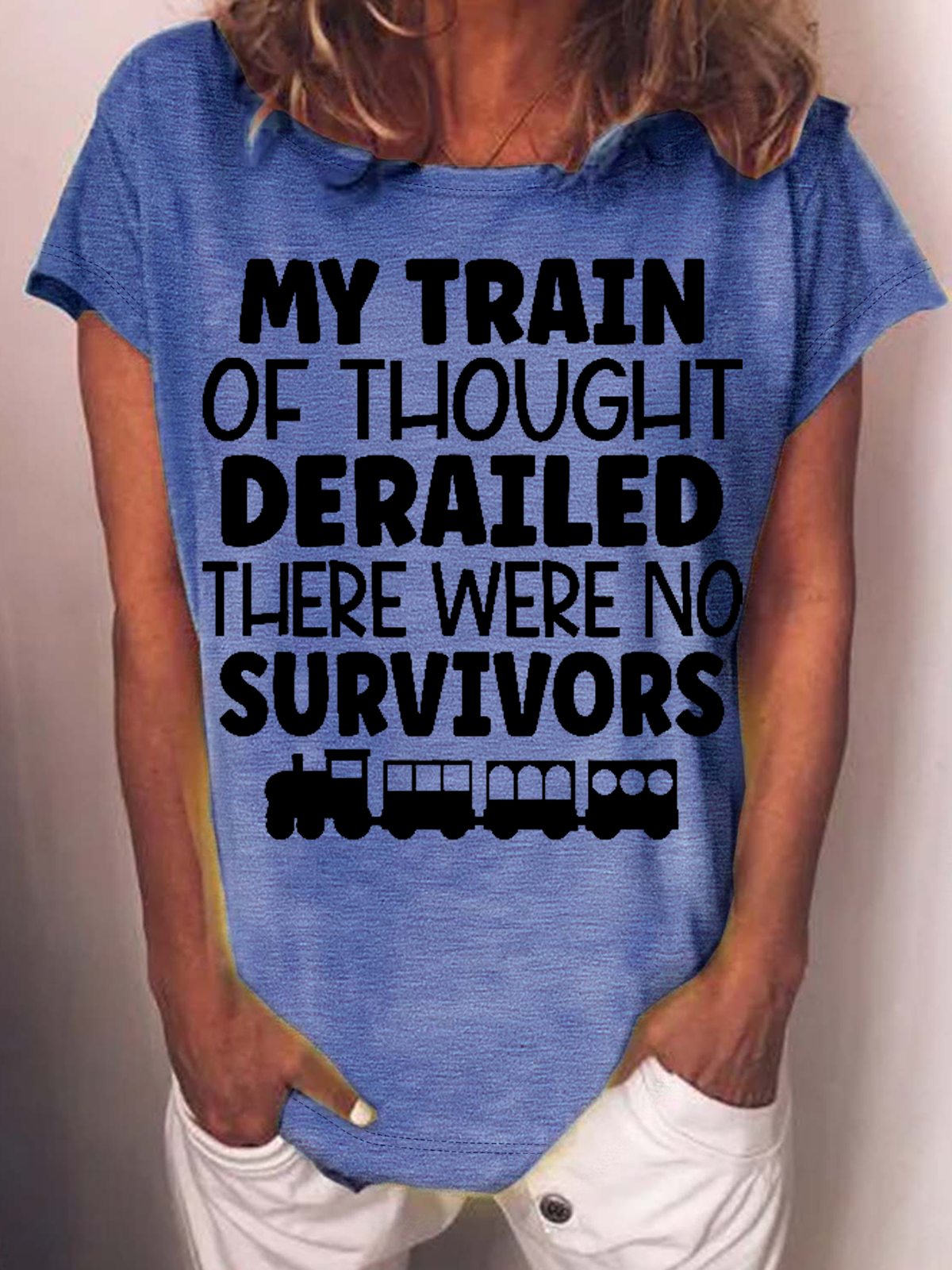 Women‘s Funny Word My Train Of Thought Derailed Casual Crew Neck T-Shirt
