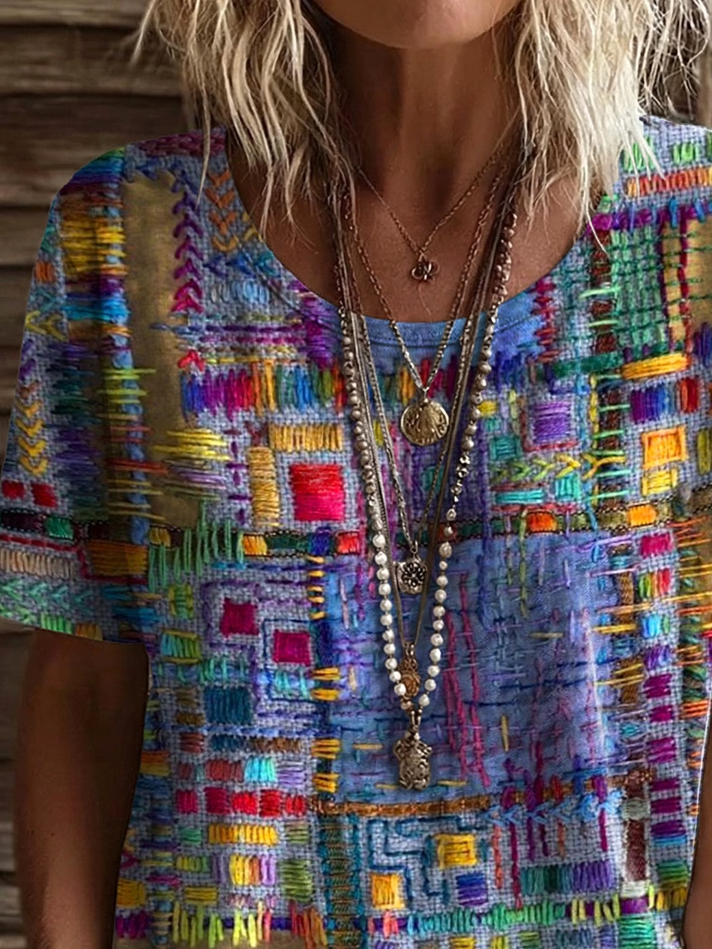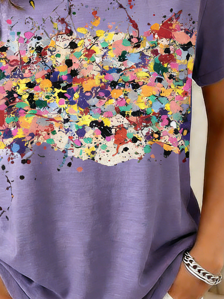 Women's Short Sleeve T-shirt Summer Purple Abstract Printing Jersey Crew Neck Daily Going Out Casual Top