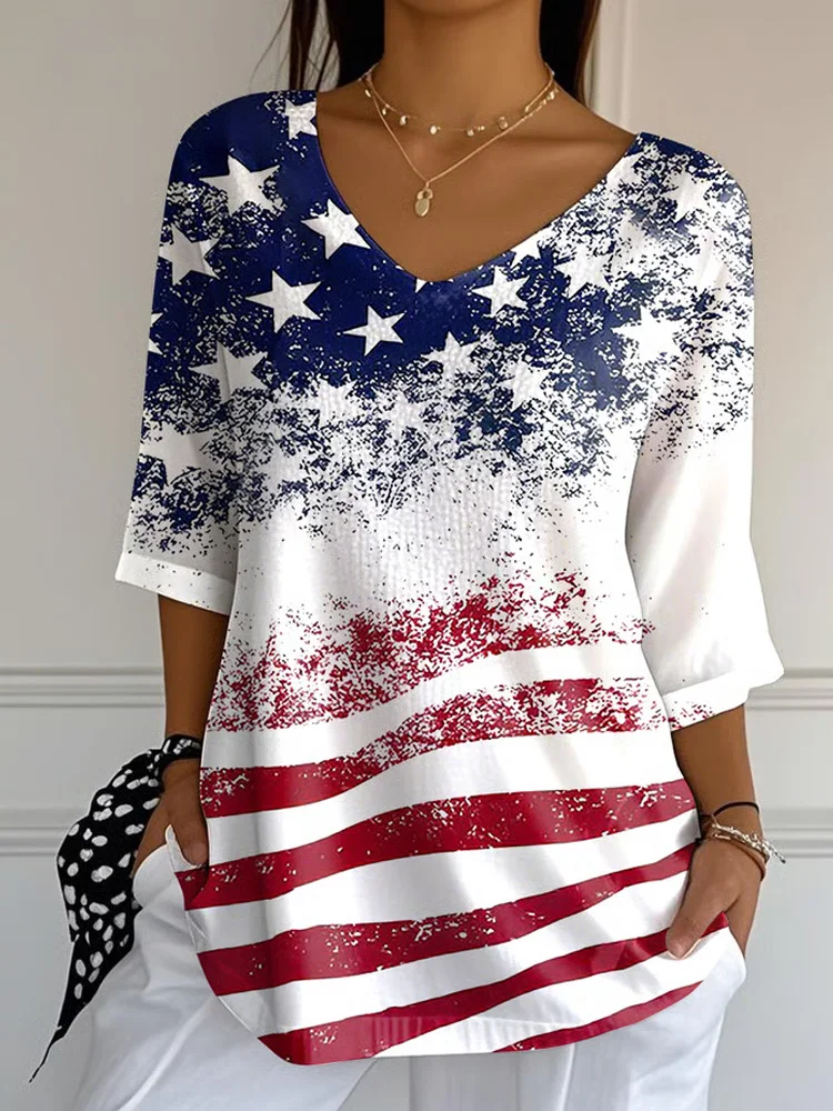 Women's Long Sleeve T-shirt Spring/Fall As Picture Heart/Cordate Printing V Neck Daily Going Out Casual Top