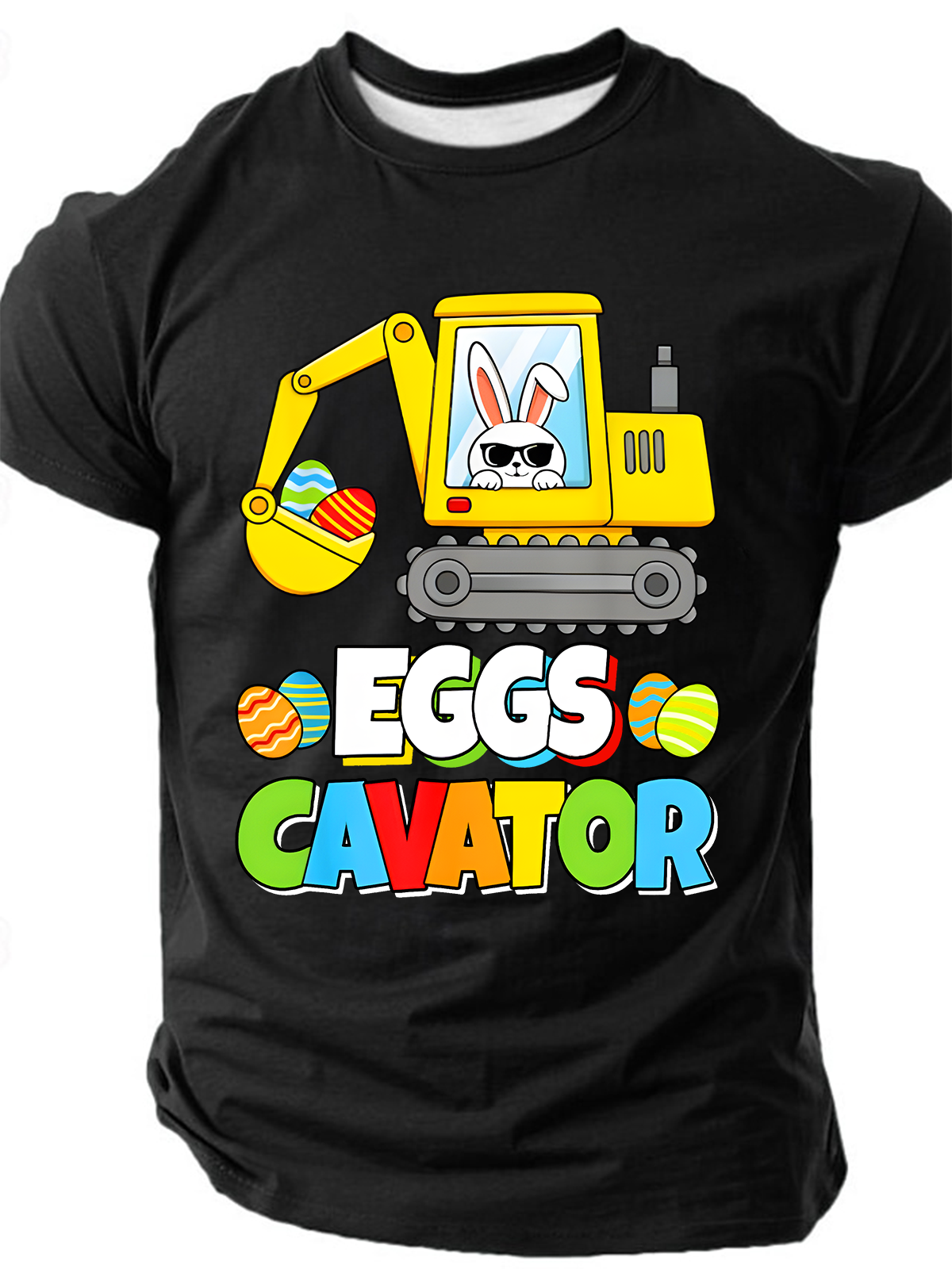 Men's Eggs Cavator Easter Bunny Excavator Funny Rabbit Funny Short Sleeve T-shirt