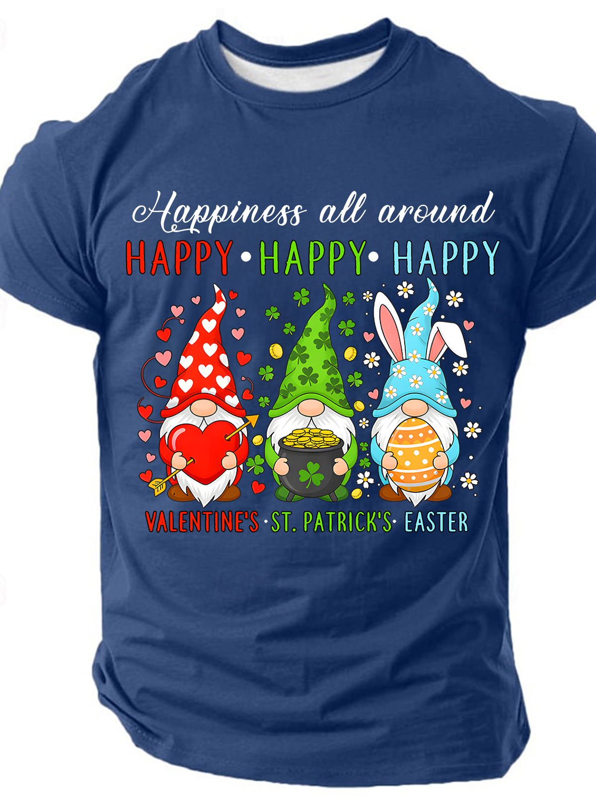 Men's Happy Valentines St Patrick Easter Happy Holiday Gnome Funny Short Sleeve T-shirt