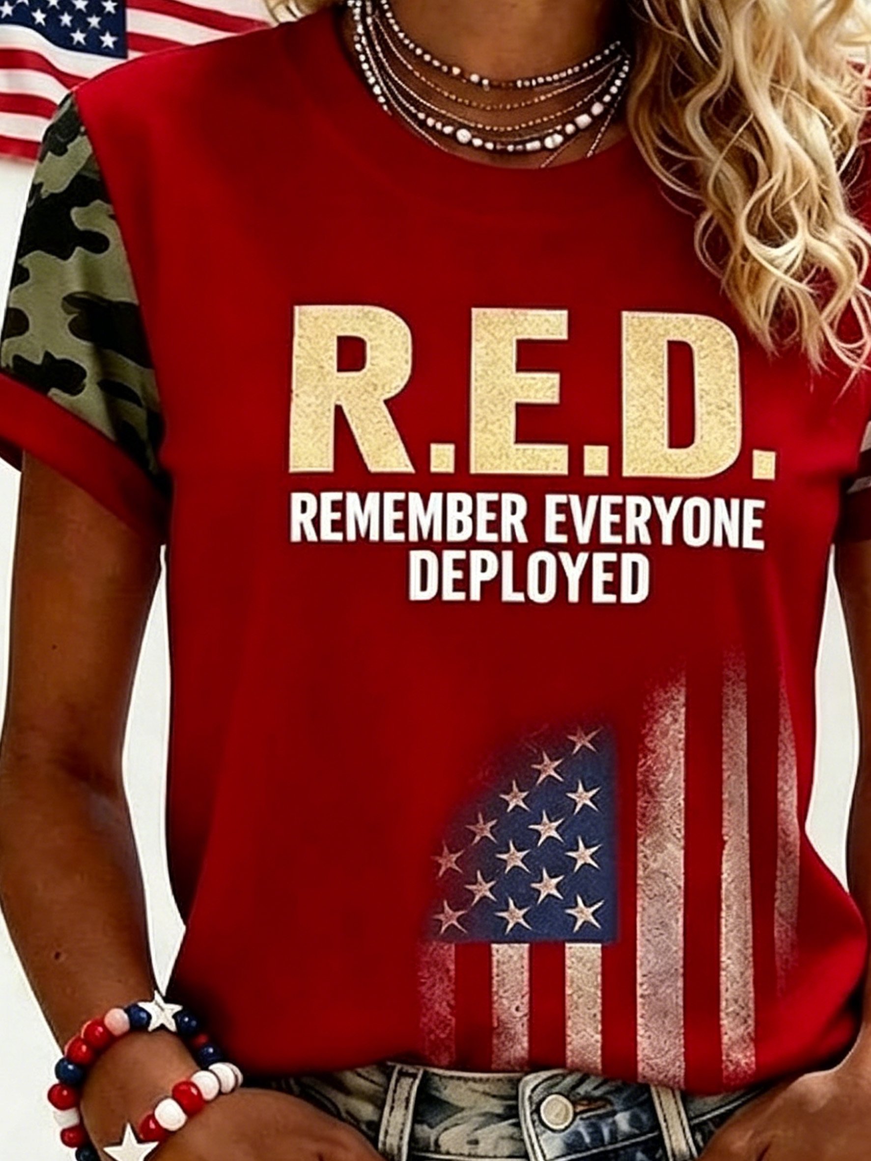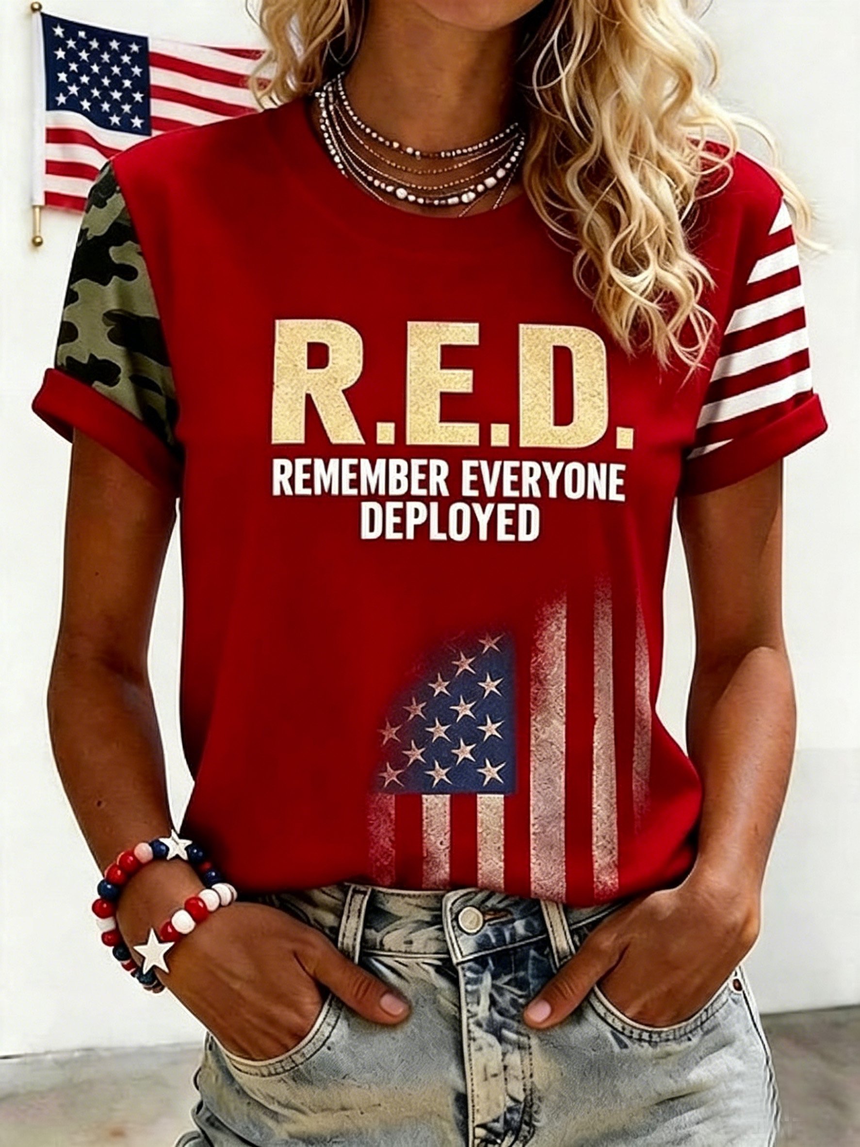 Women's Independence Day Floral Print Casual Crew Neck Short Sleeve T-Shirt