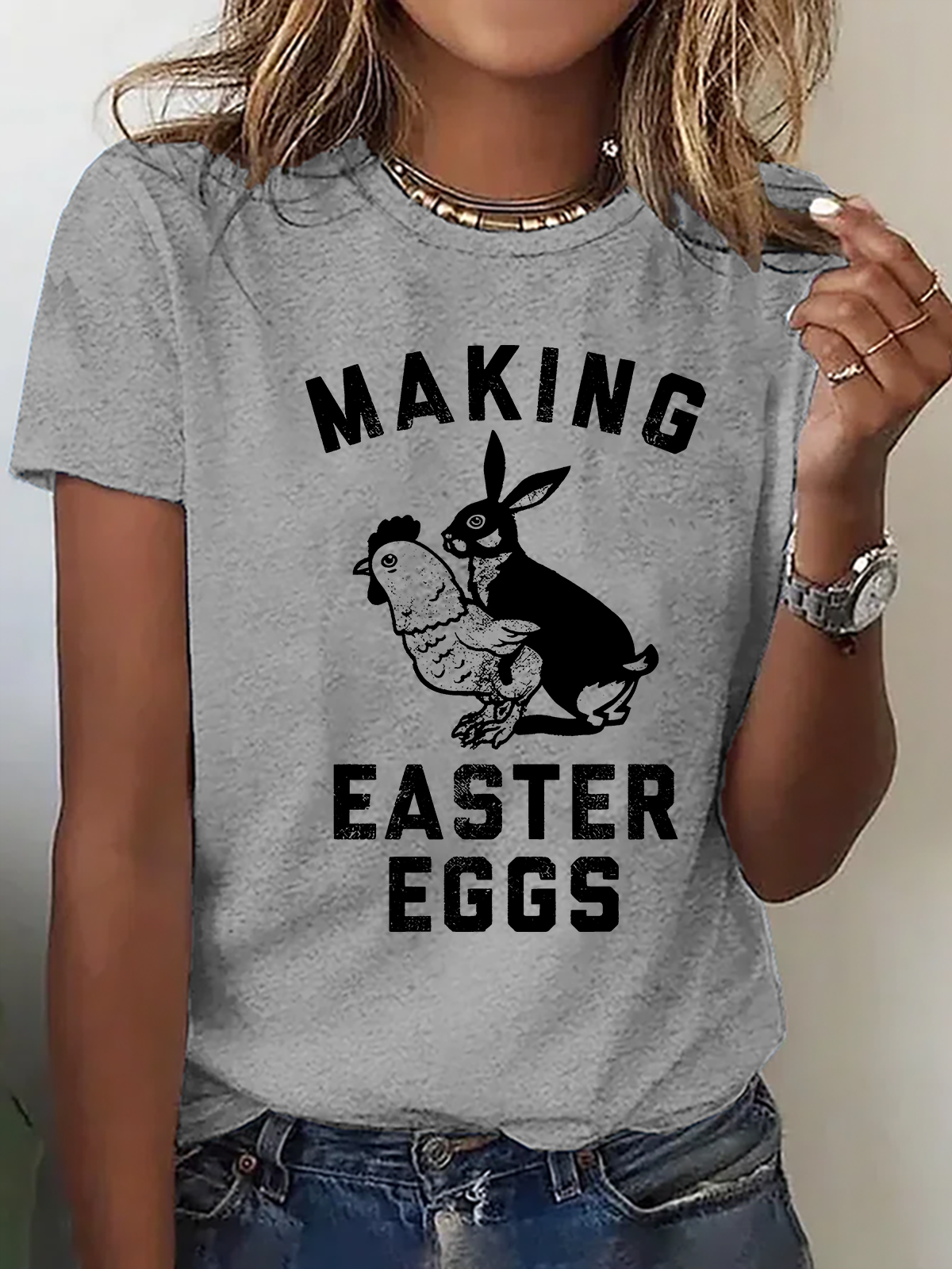 Making Easter Eggs Rude Easter Bunny & Chicken Cotton T-Shirt