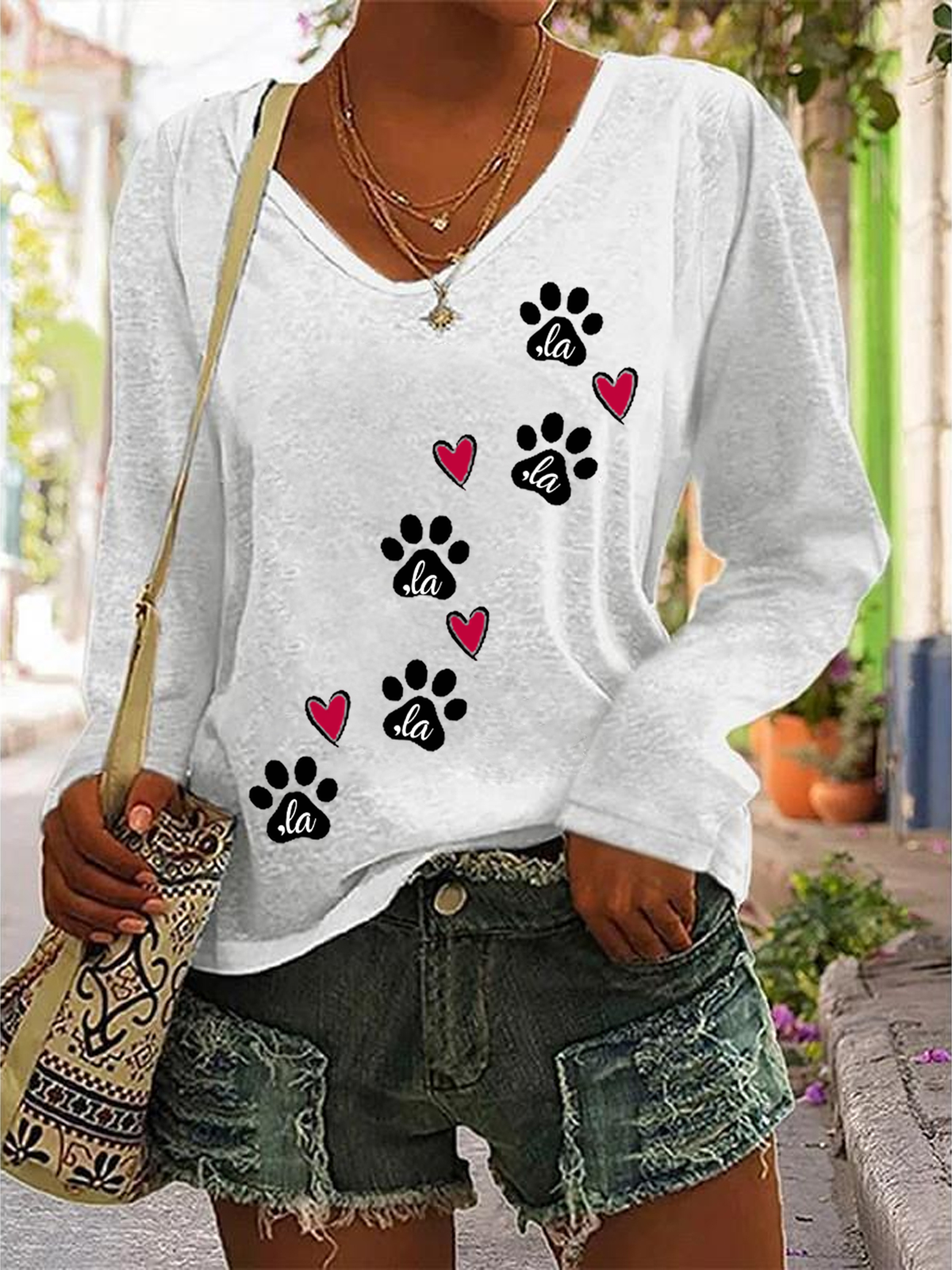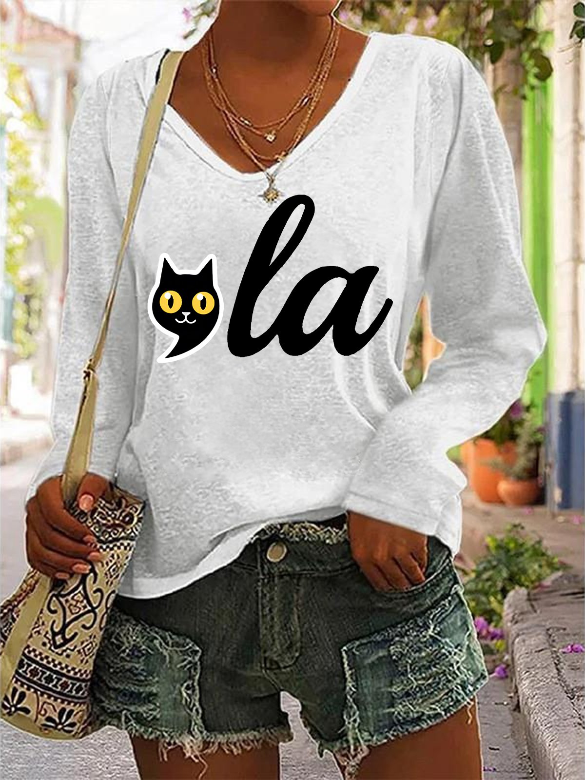La Cat Vote Women's La Cat Vote Printed Casual V-Neck Long Sleeve Shirt