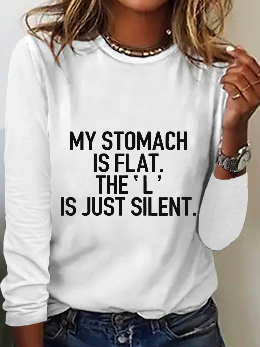 My Stomach Is Flat The L Is Just Silent Casual Long Sleeve Shirt