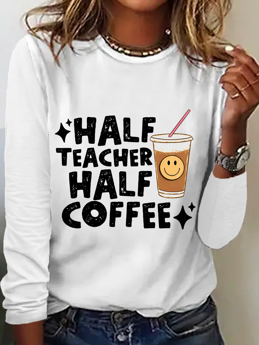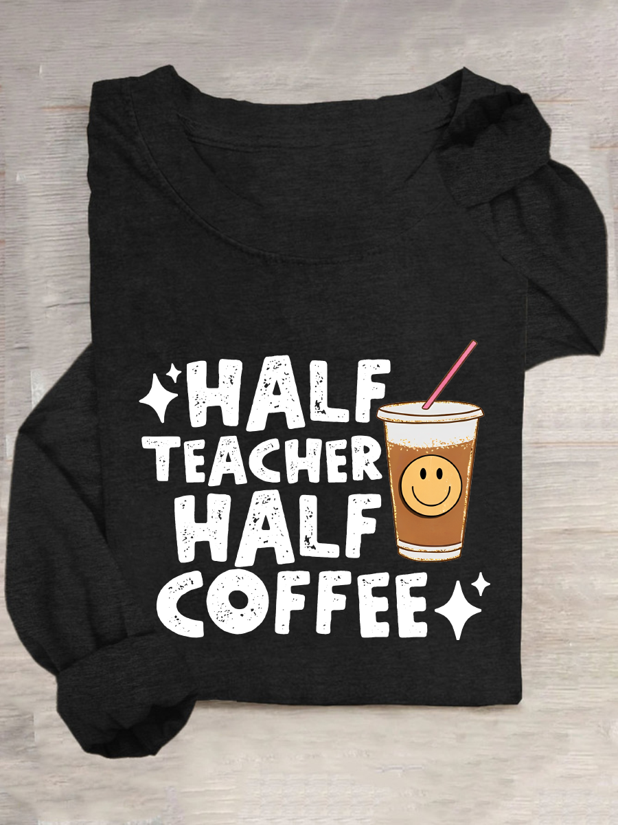 Half Teacher Half Coffee Cute Teacher Casual Long Sleeve Shirt