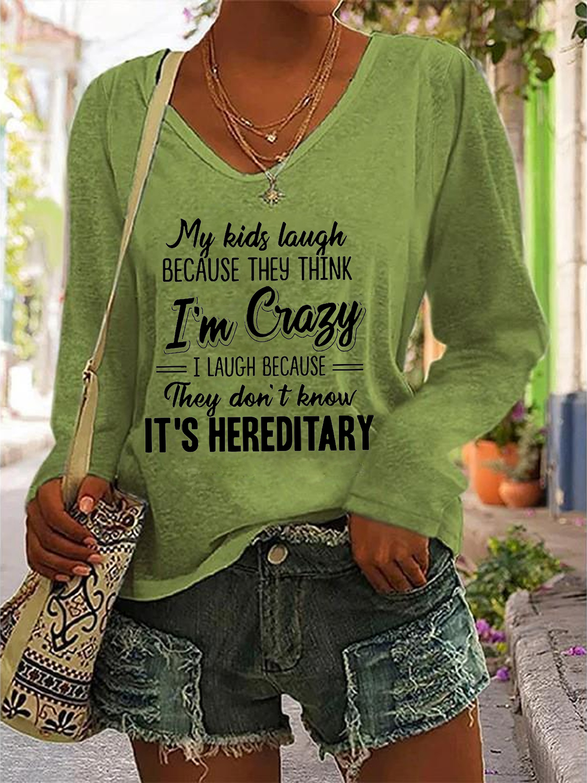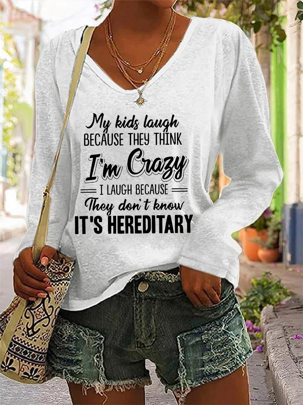 My Kids Laugh Because They Think I’m Crazy They Don’t Know It’s Hereditary v-neck Long Sleeve Shirt
