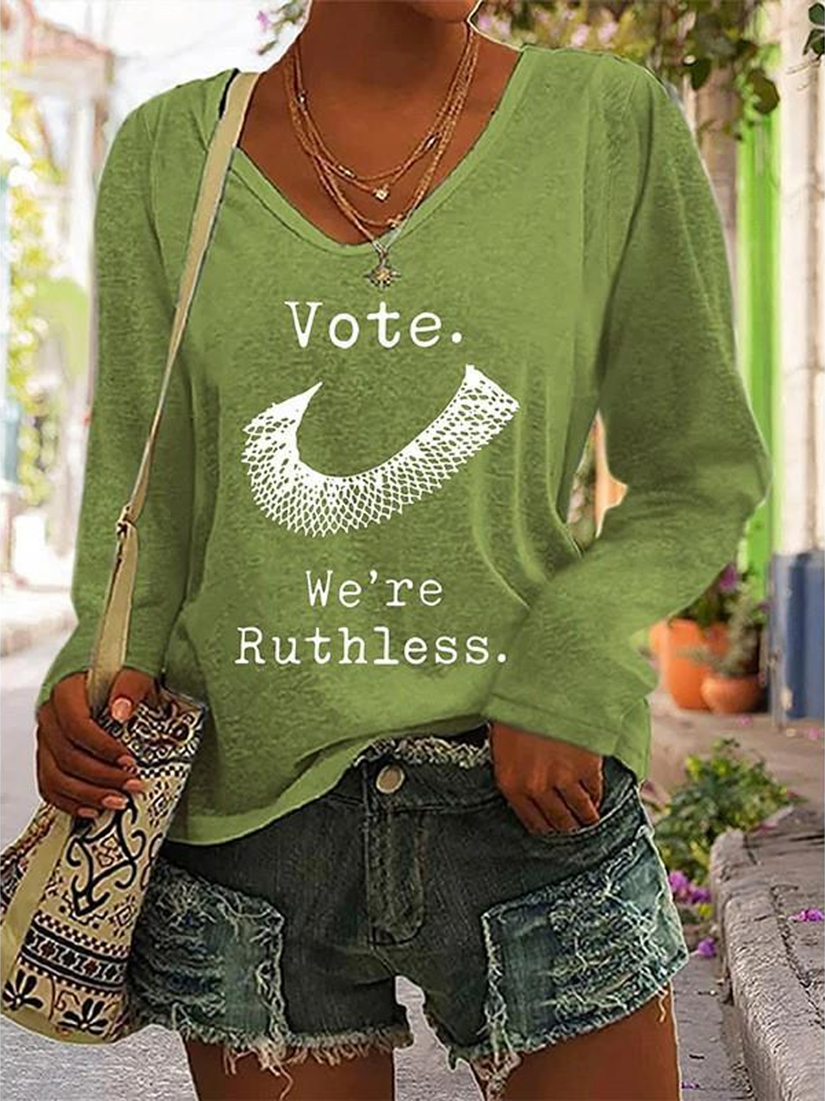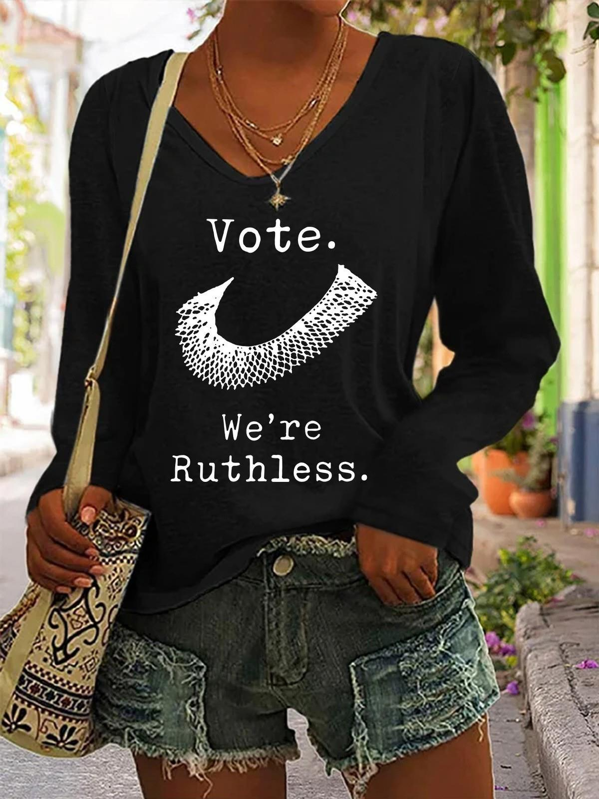 Women Vote We're Ruthless V Neck Casual Blouse