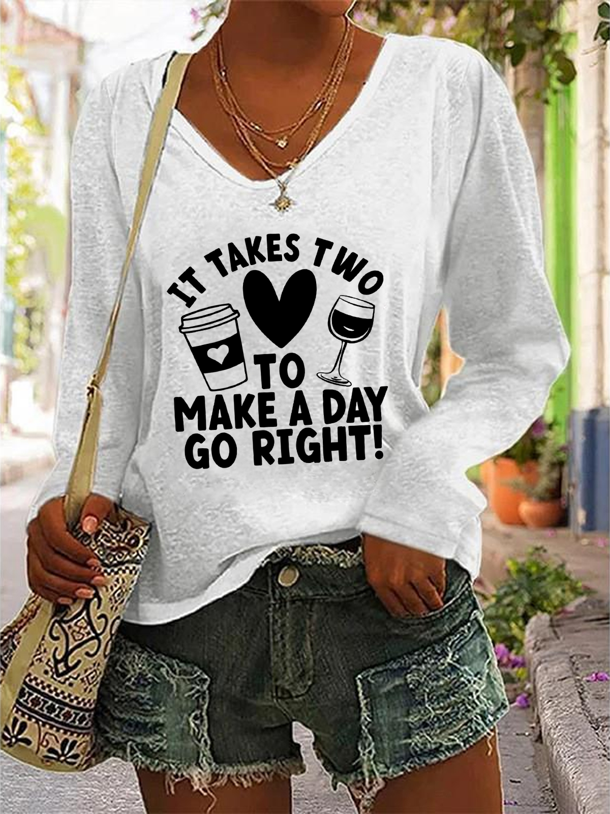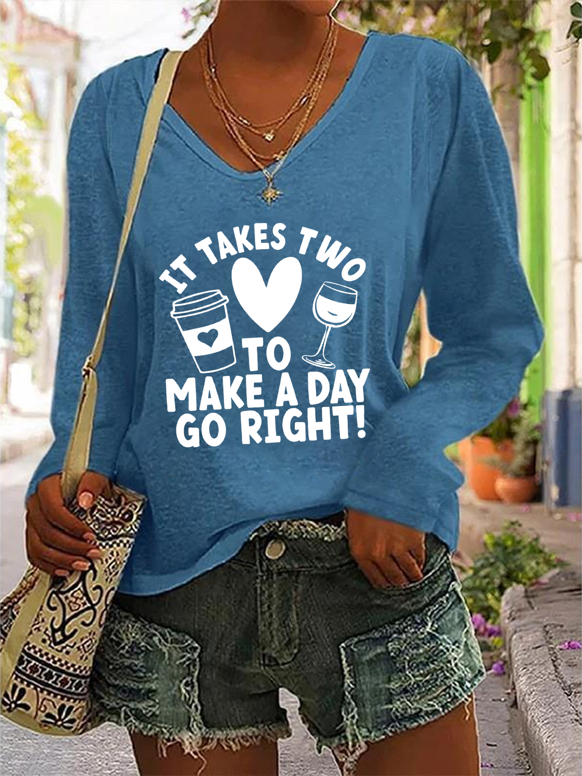 It Takes Two To Make A Day Go Right Casual V-Neck Long Sleeve Shirt