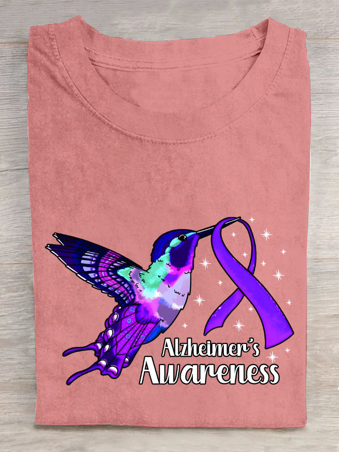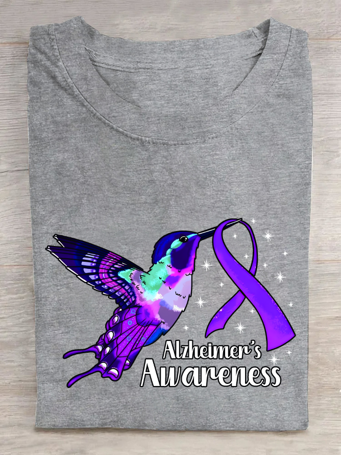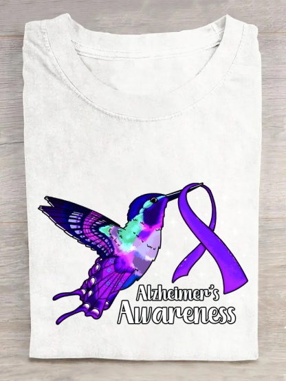 Alzheimers Awareness Humming Bird Cotton T-Shirt