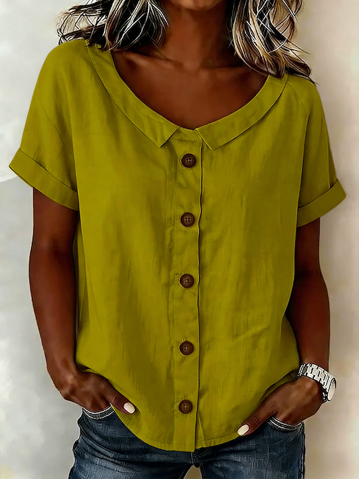 Cotton And Linen Short Sleeve Summer Plain Casual Shirt