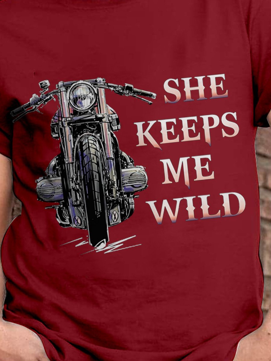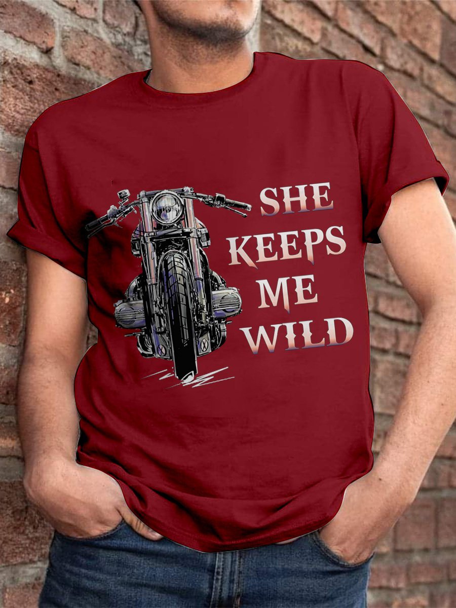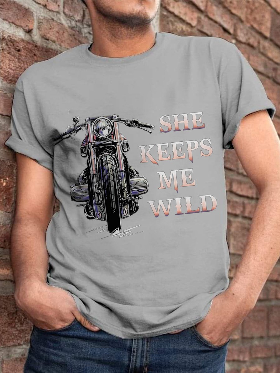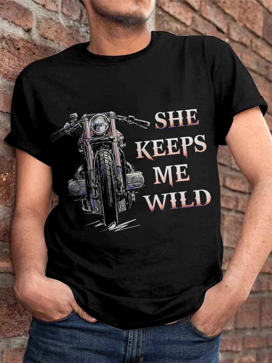Couple Motorcycle She Keeps Me Wild Graphic Men's Short Sleeve T-shirt