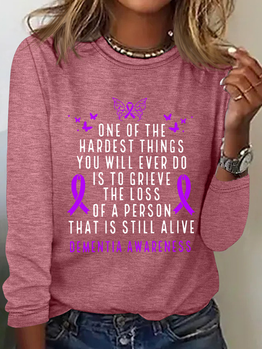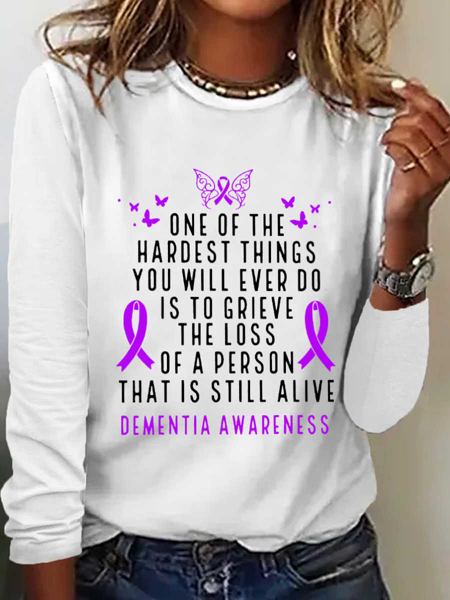 Dementia Awareness Month Butterfly Warrior Alzheimers Casual Long Sleeve Shirt