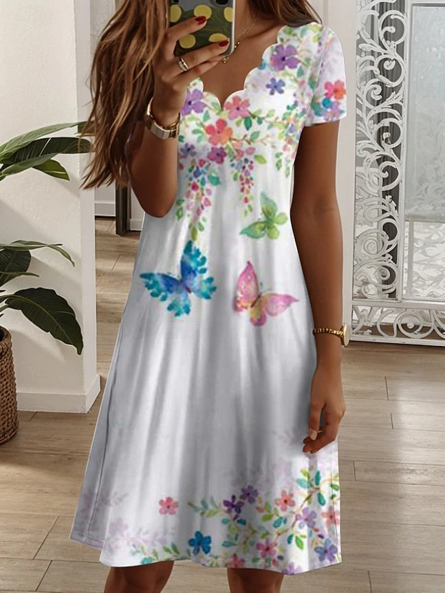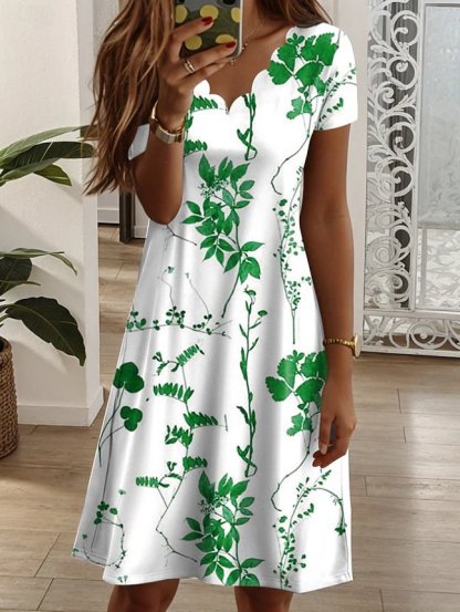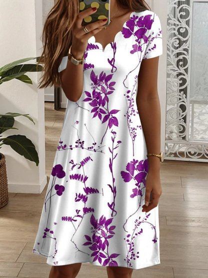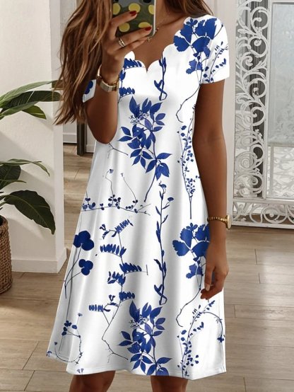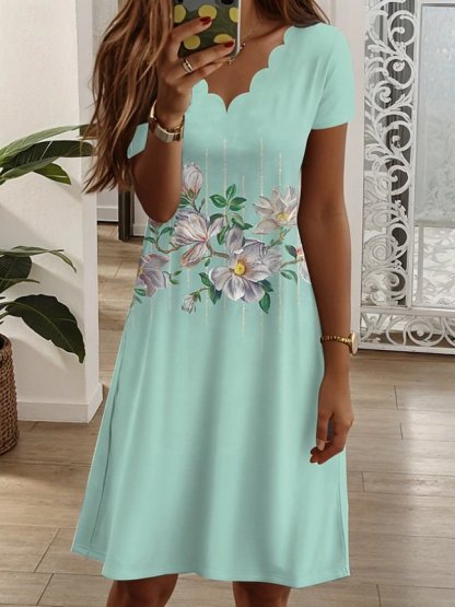 Elegant Cotton-Blend Floral Dress With No