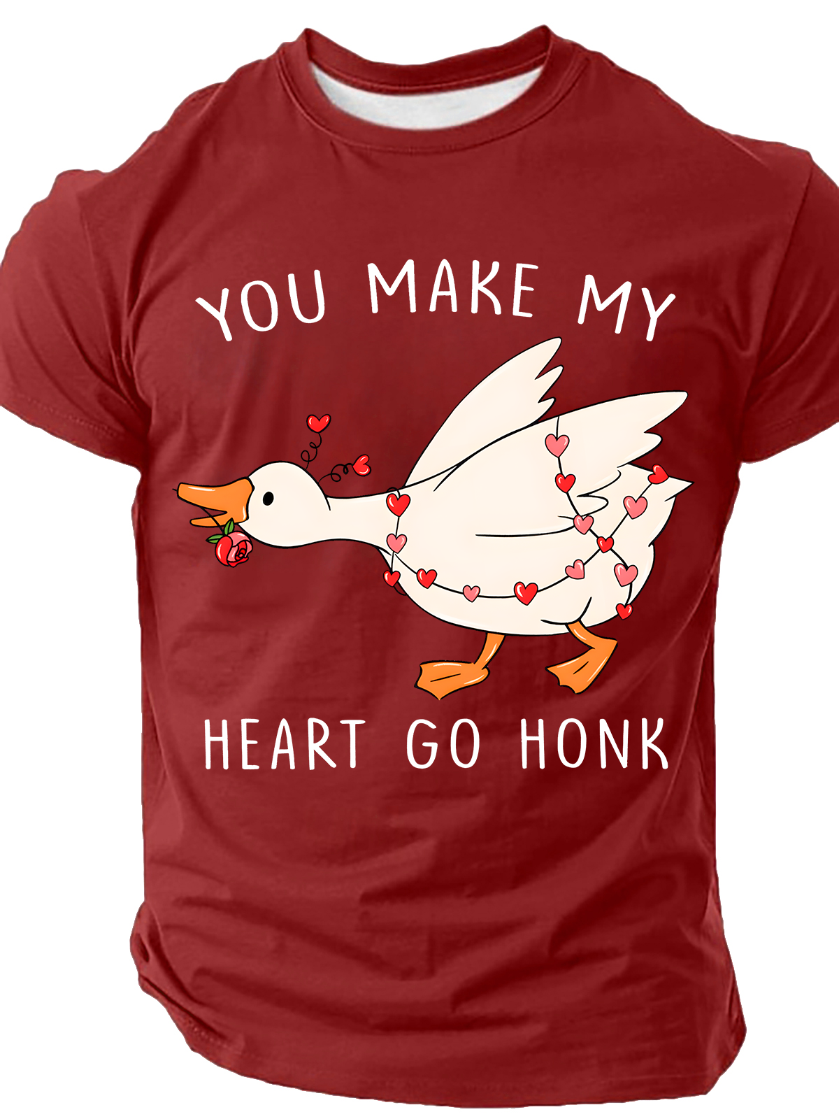 Funny Valentine Goose You Make My Heart Go Honk Cotton T-Shirt