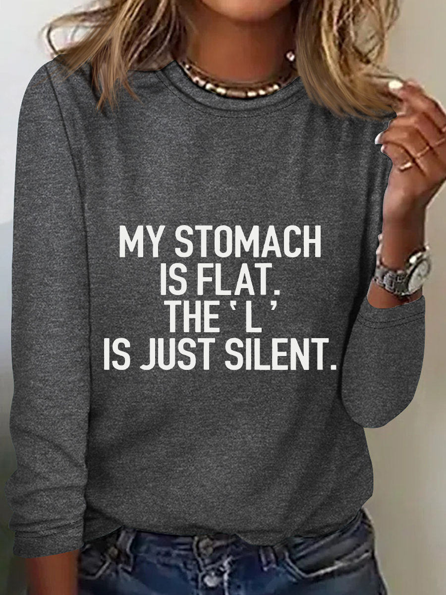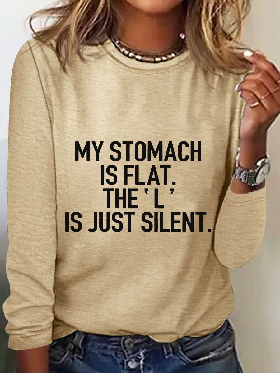 My Stomach Is Flat The L Is Just Silent Casual Long Sleeve Shirt