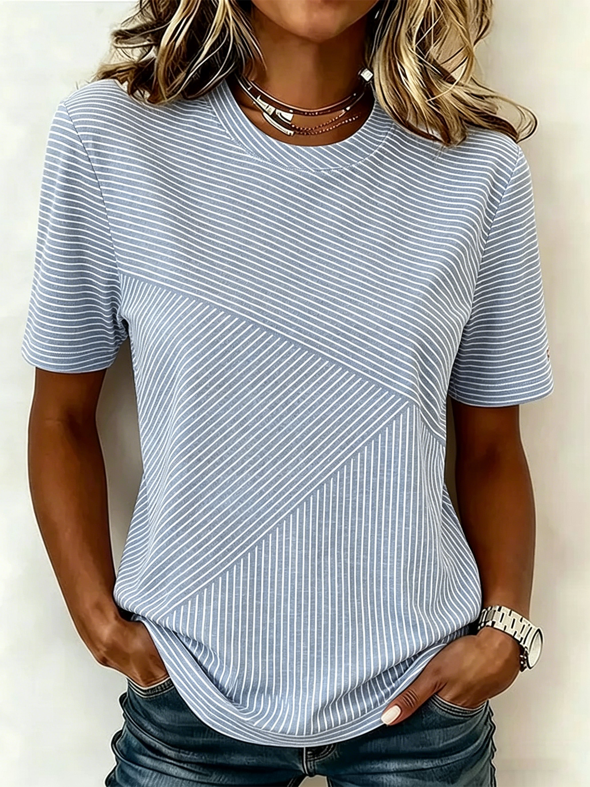 Regular Fit Striped Casual Cotton T-Shirt