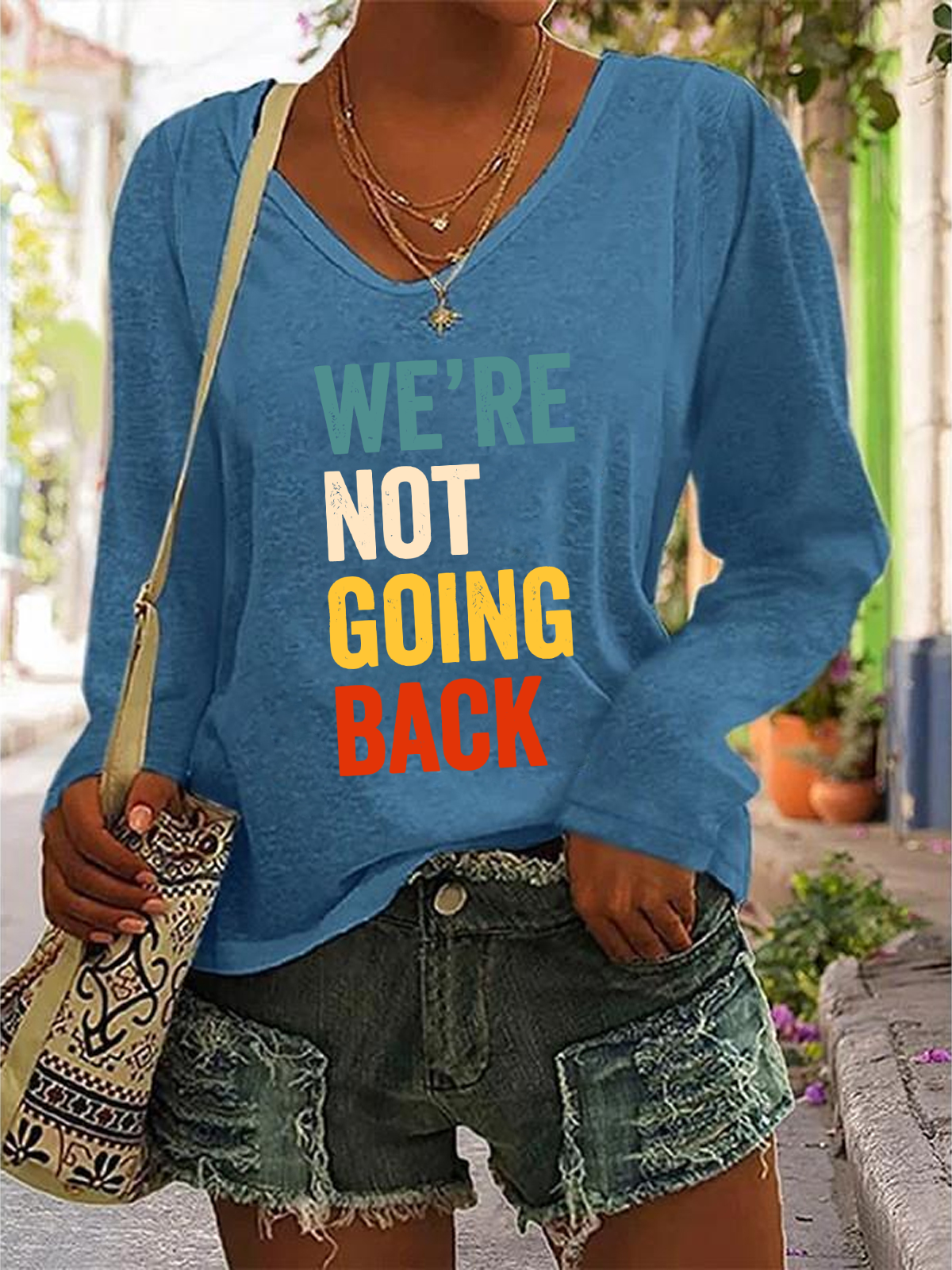 We're Not Going Back Casual V-Neck Long Sleeve Shirt