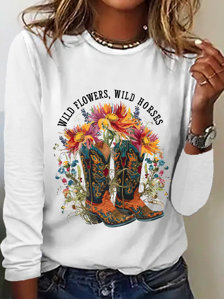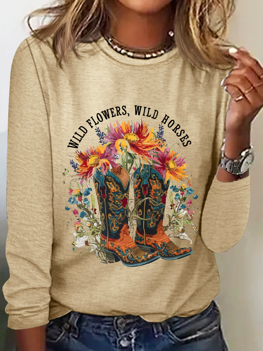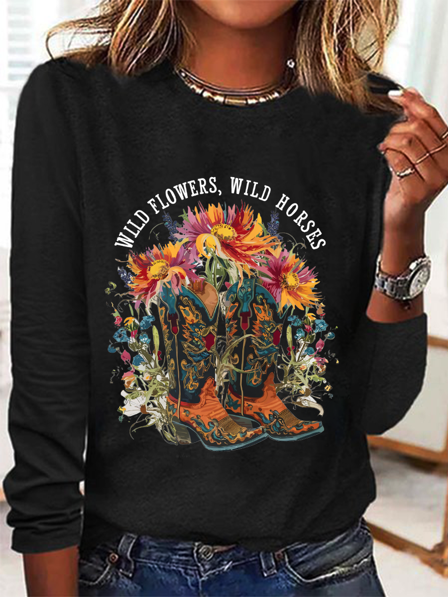 Wild Flowers Wild Horses Casual Long Sleeve Shirt