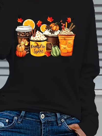 Women's Long Sleeve T-shirt Spring/Fall Black Halloween (pumpkin) Printing Jersey Crew Neck Daily Going Out Casual Top