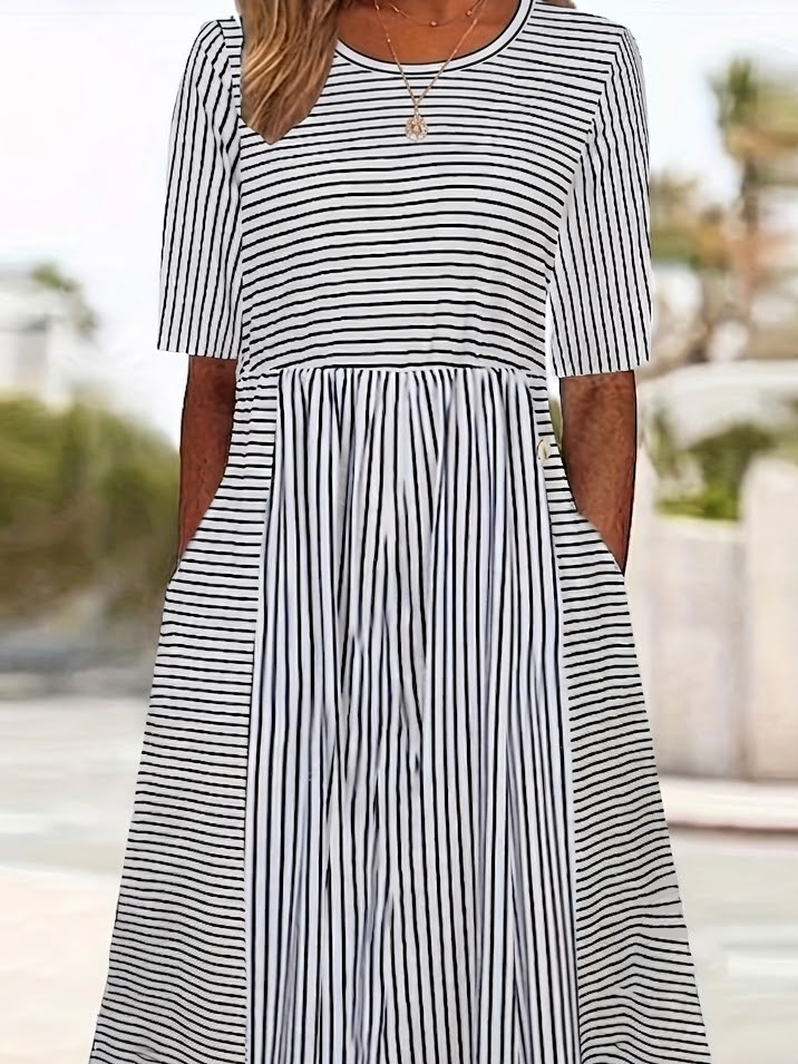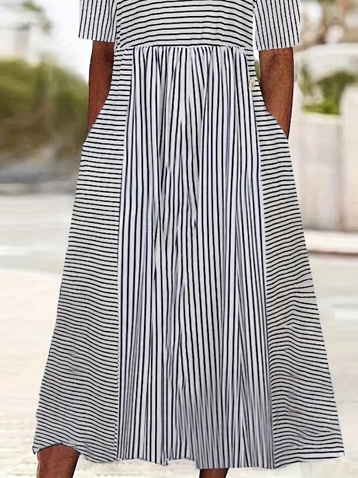 Women's Short Sleeve Summer White Striped Printing Crew Neck Daily Going Out Casual Maxi H-Line Shift Dress Dress