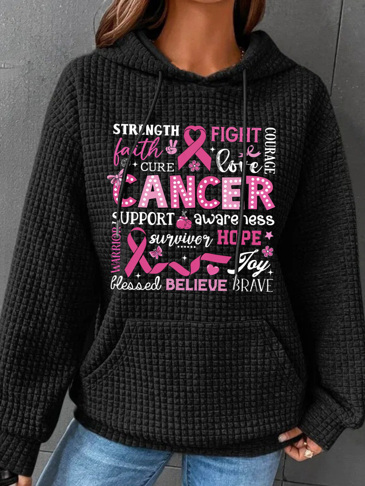 Breast Cancer Awareness Breast Cancer In October We Wear Pink Simple Loose Hoodie
