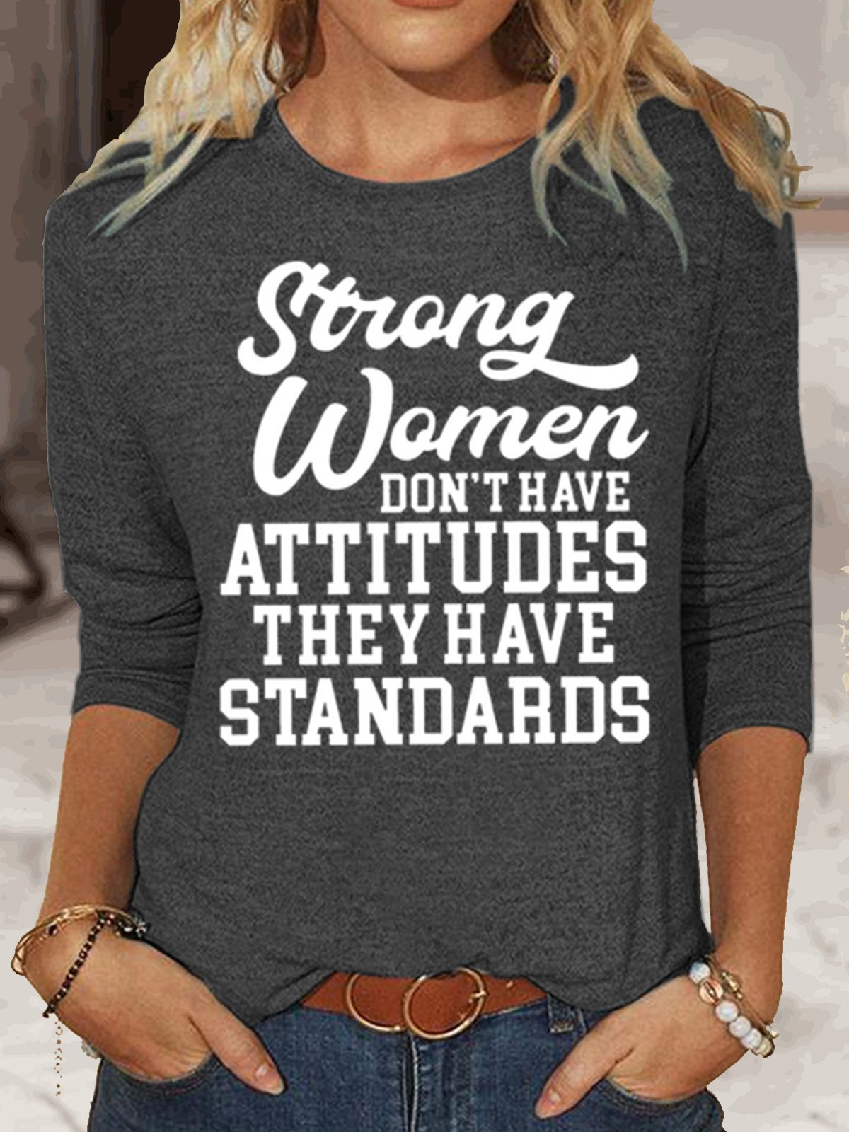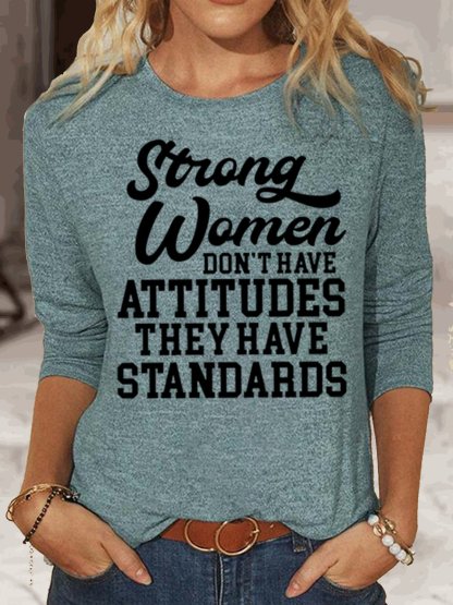 Women‘s Strong Women Don't Have Attitudes They Have Standards Casual Crew Neck Top