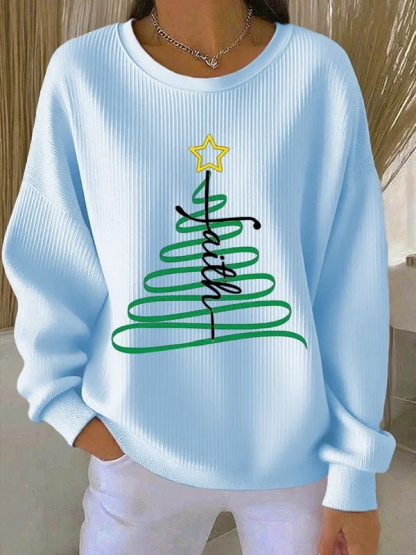 Casual Christmas Tree Printing Crew Neck Sweatshirt