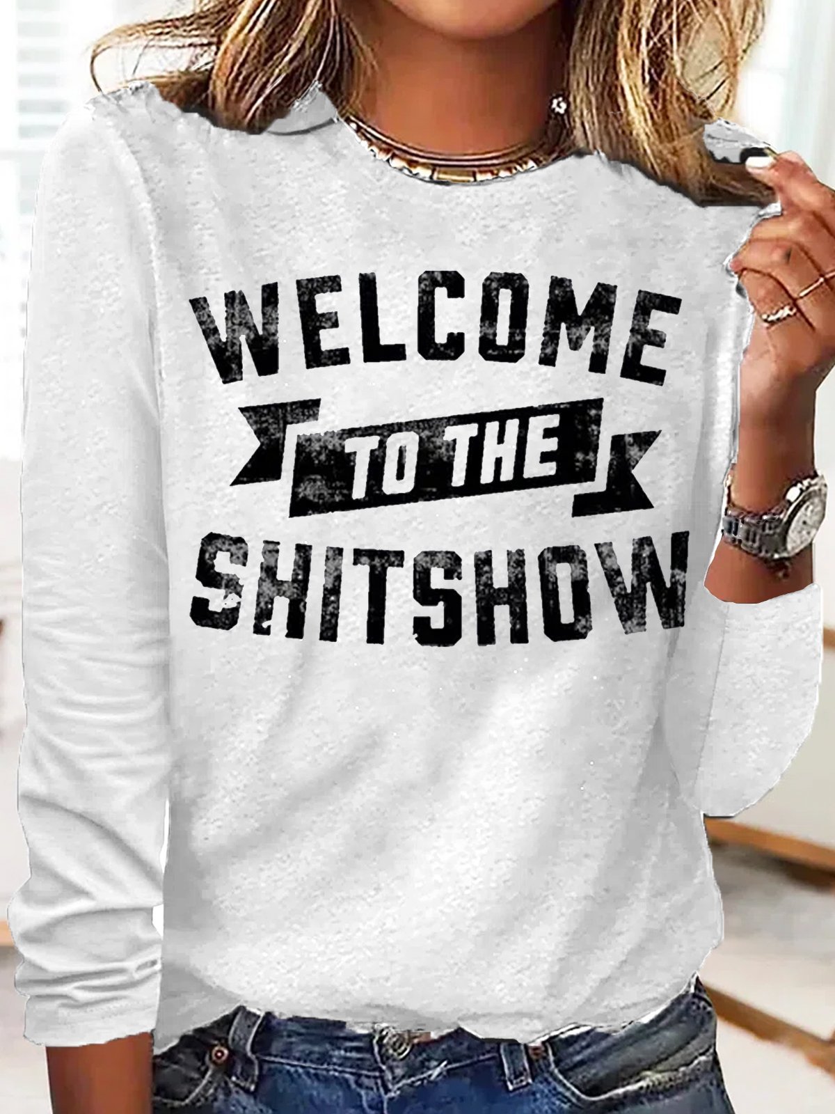 Women's Welcome To The Shit Show Funny Crew Neck Casual Top