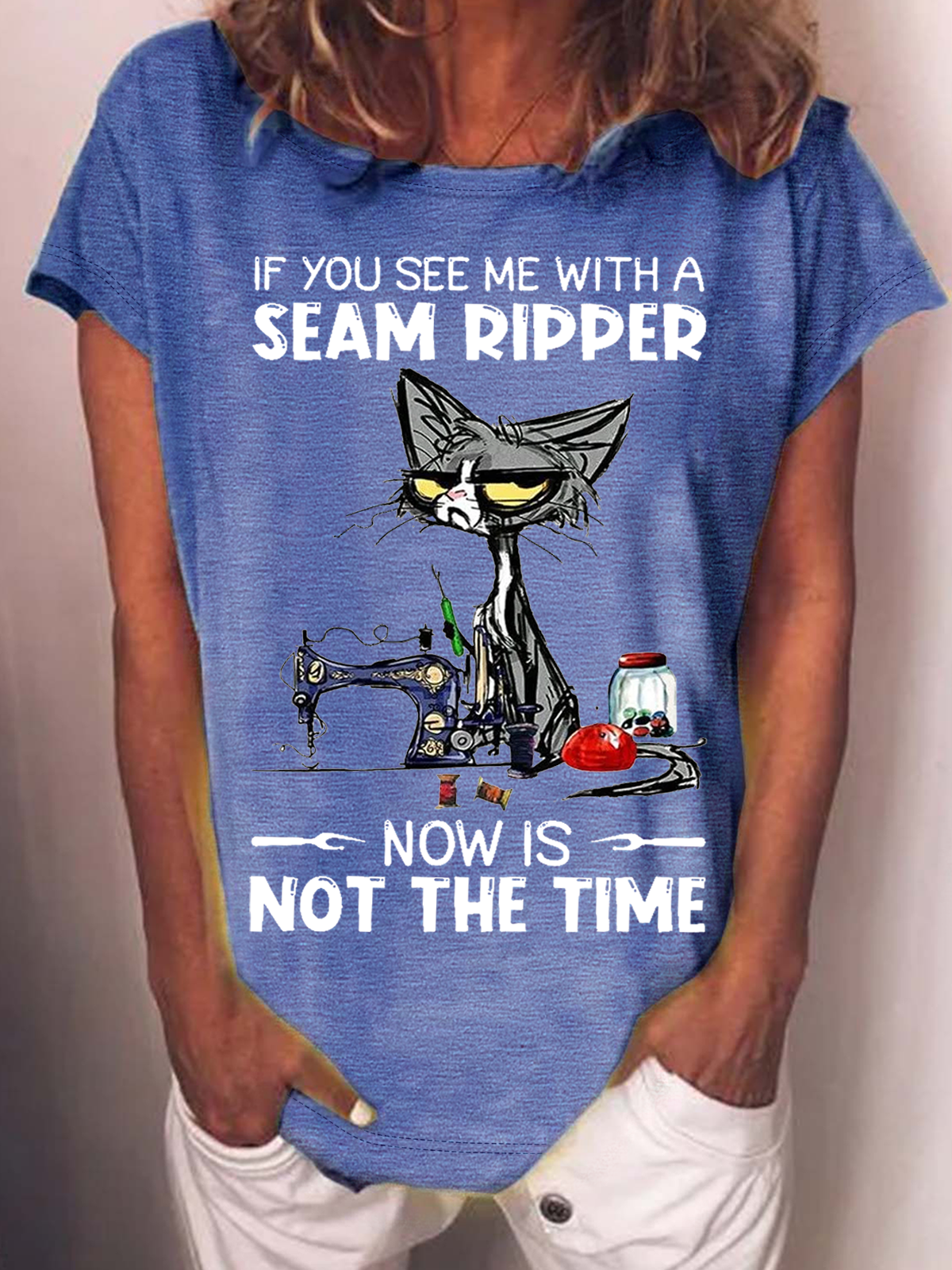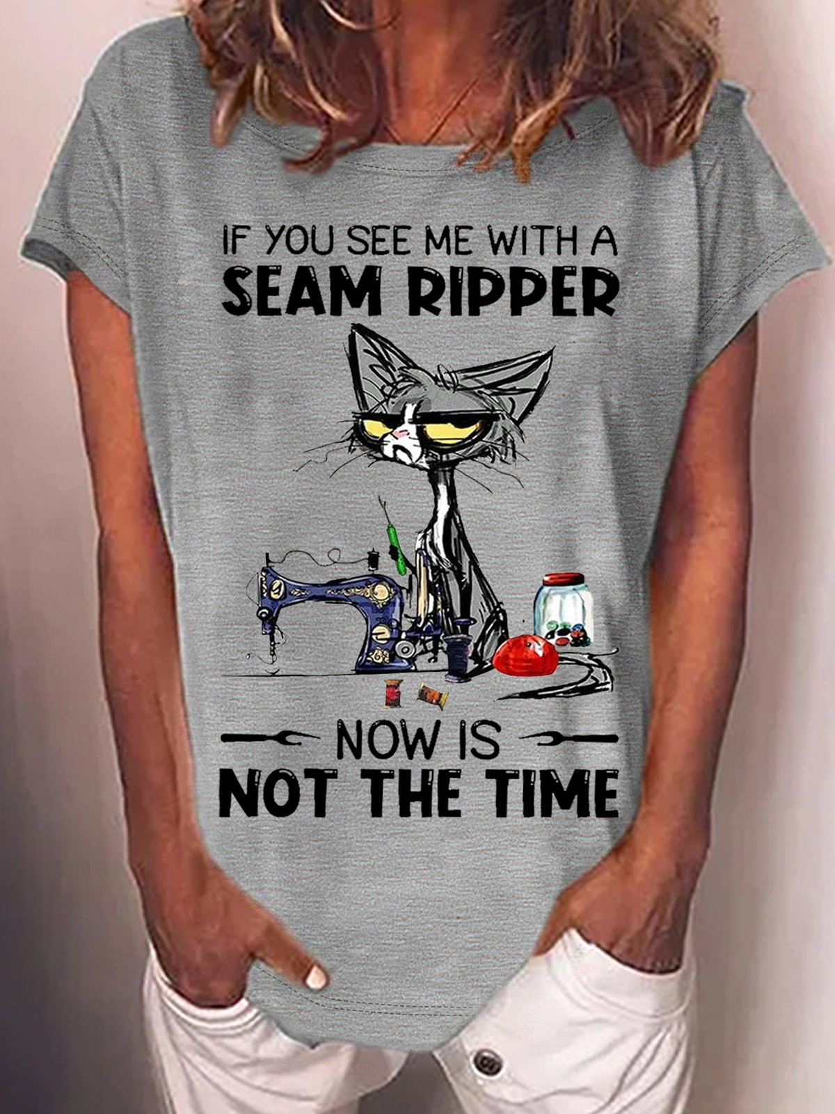 Women's Funny Word If You See Me With A Seam Ripper Text Letters Crew Neck Cotton Casual T-Shirt