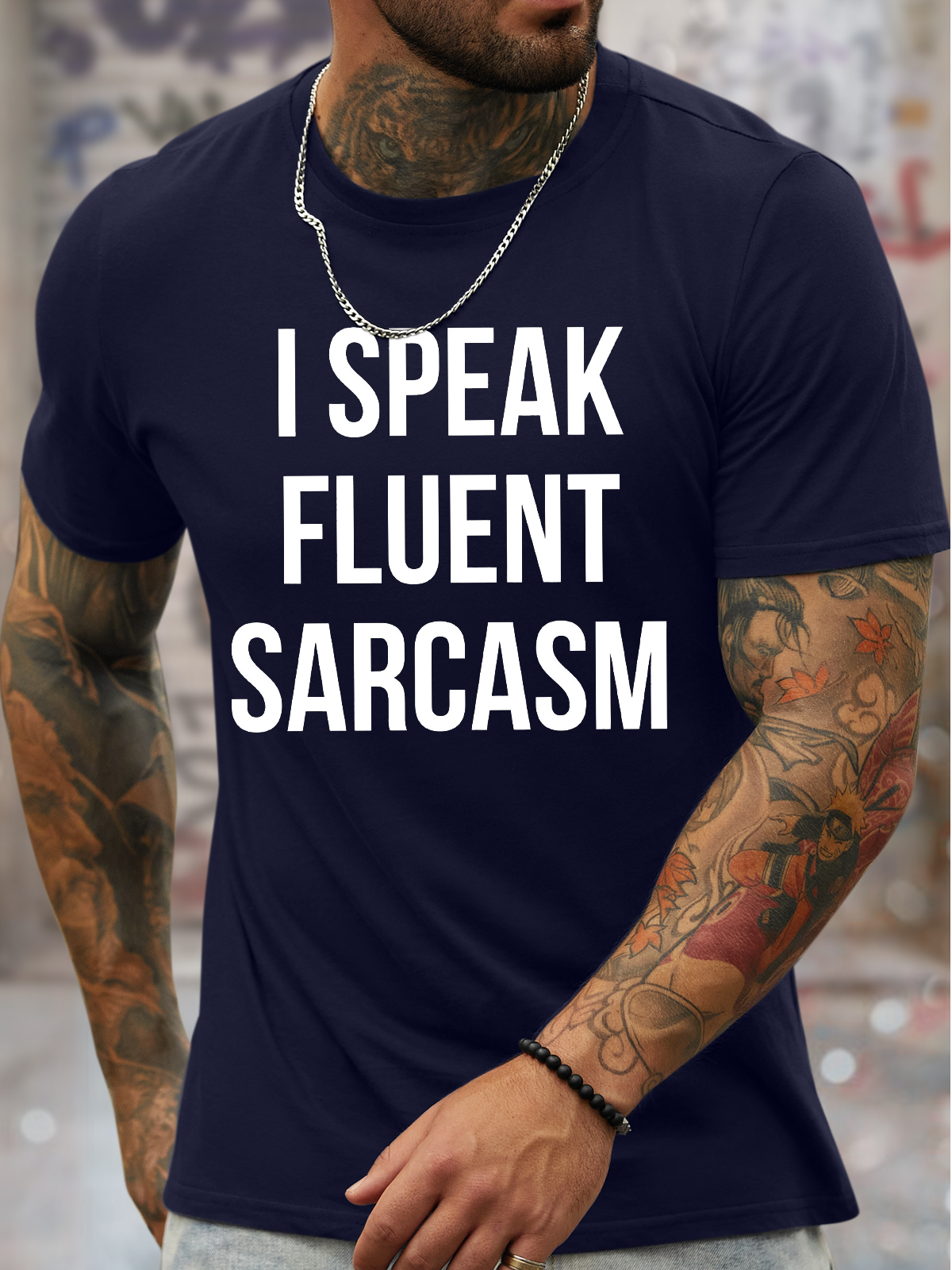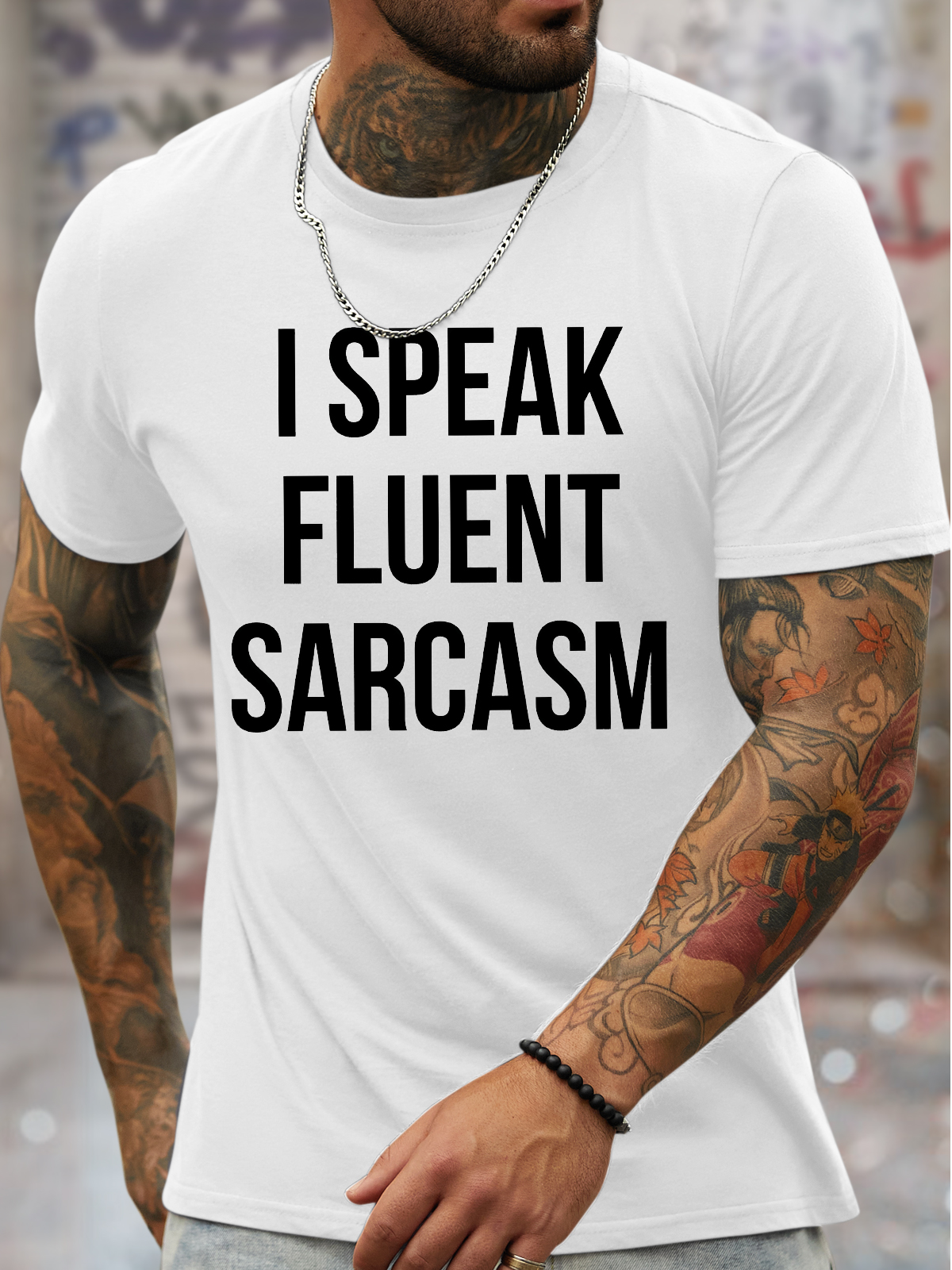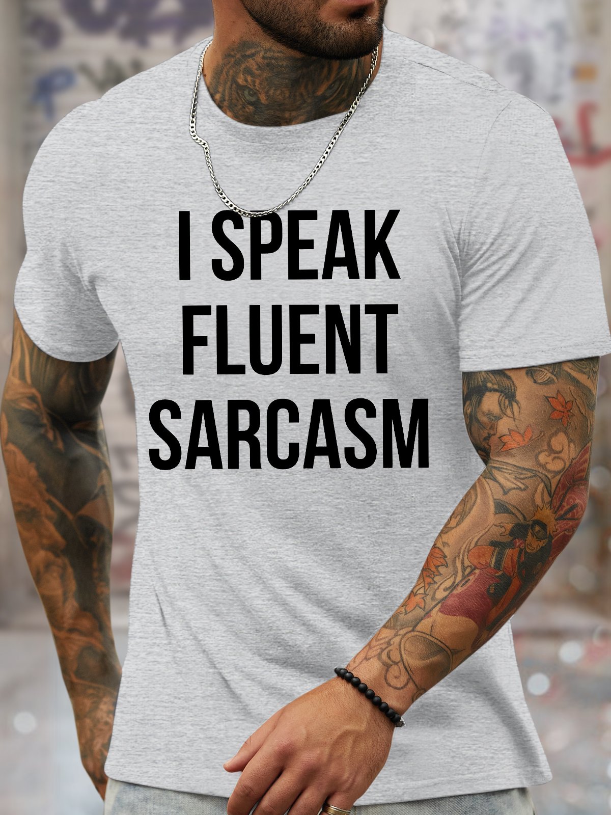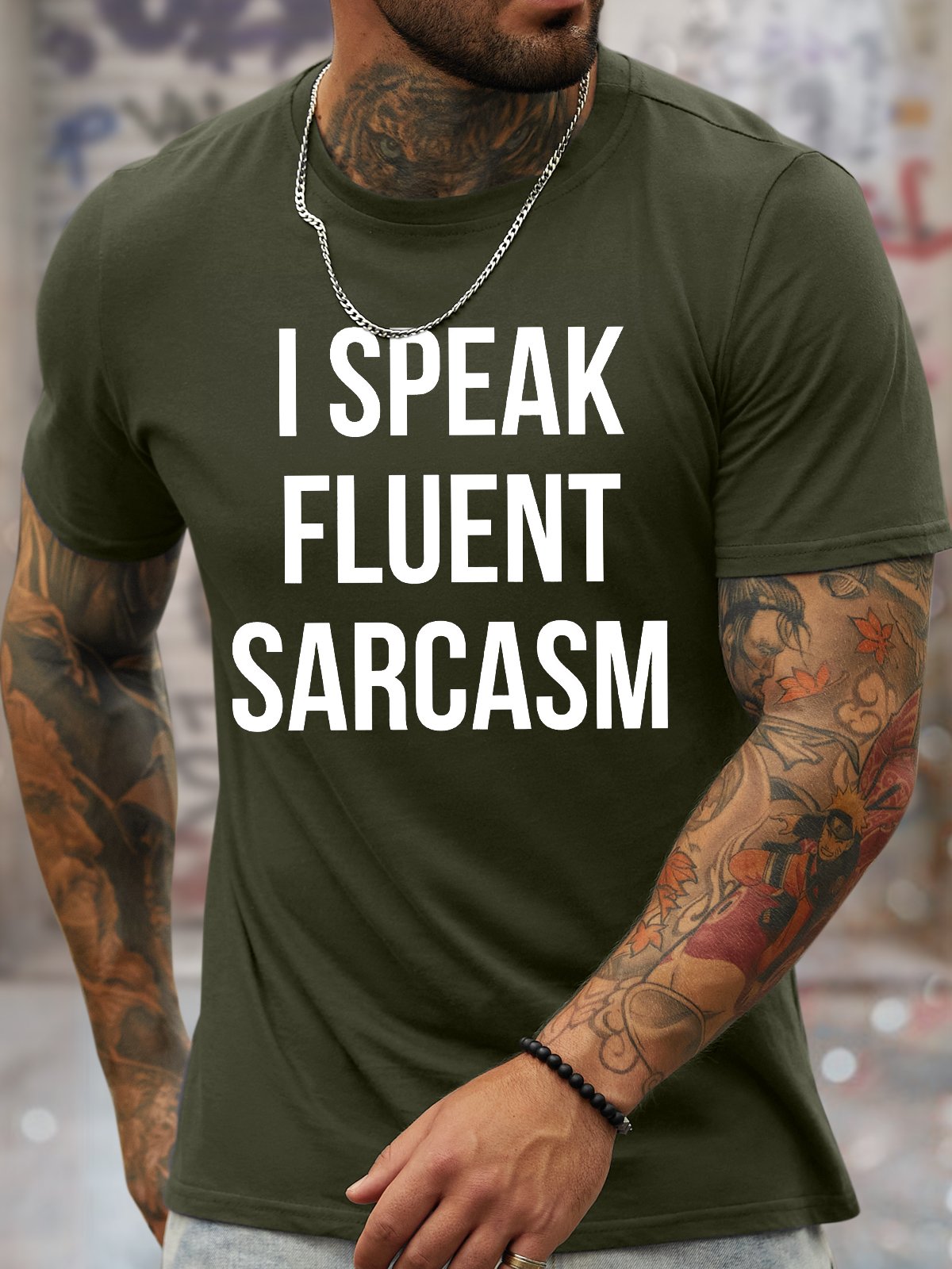 Men's I Speak Fluent Sarcasm Funny Graphic Printing Casual Loose Cotton Text Letters T-Shirt