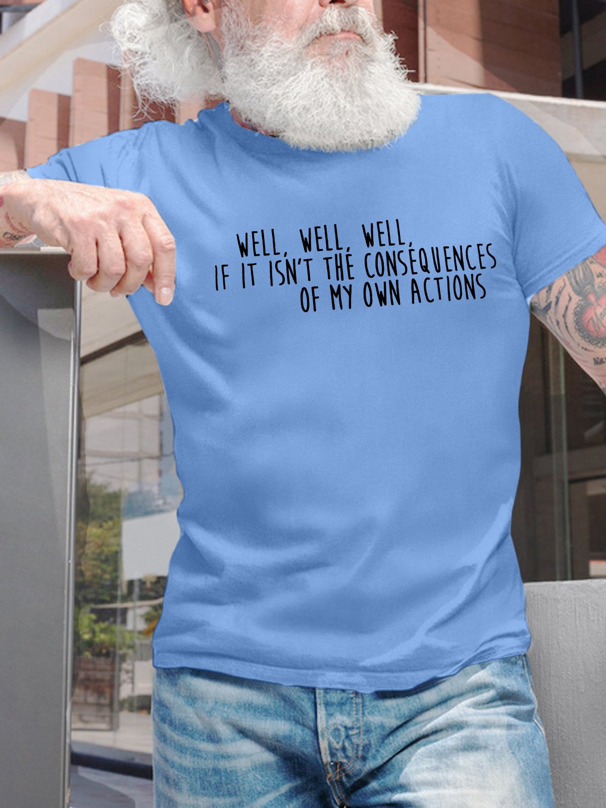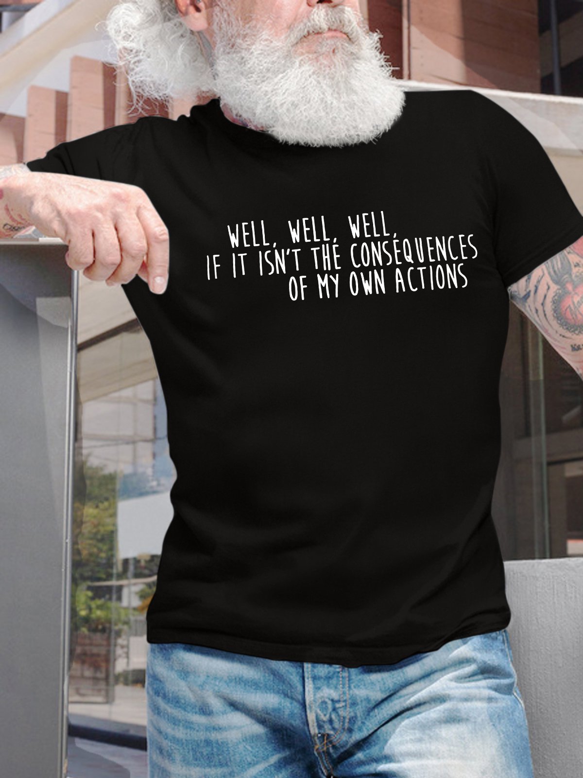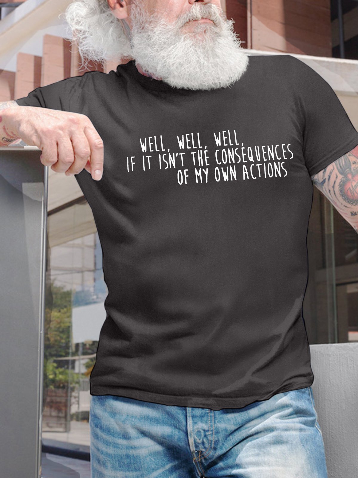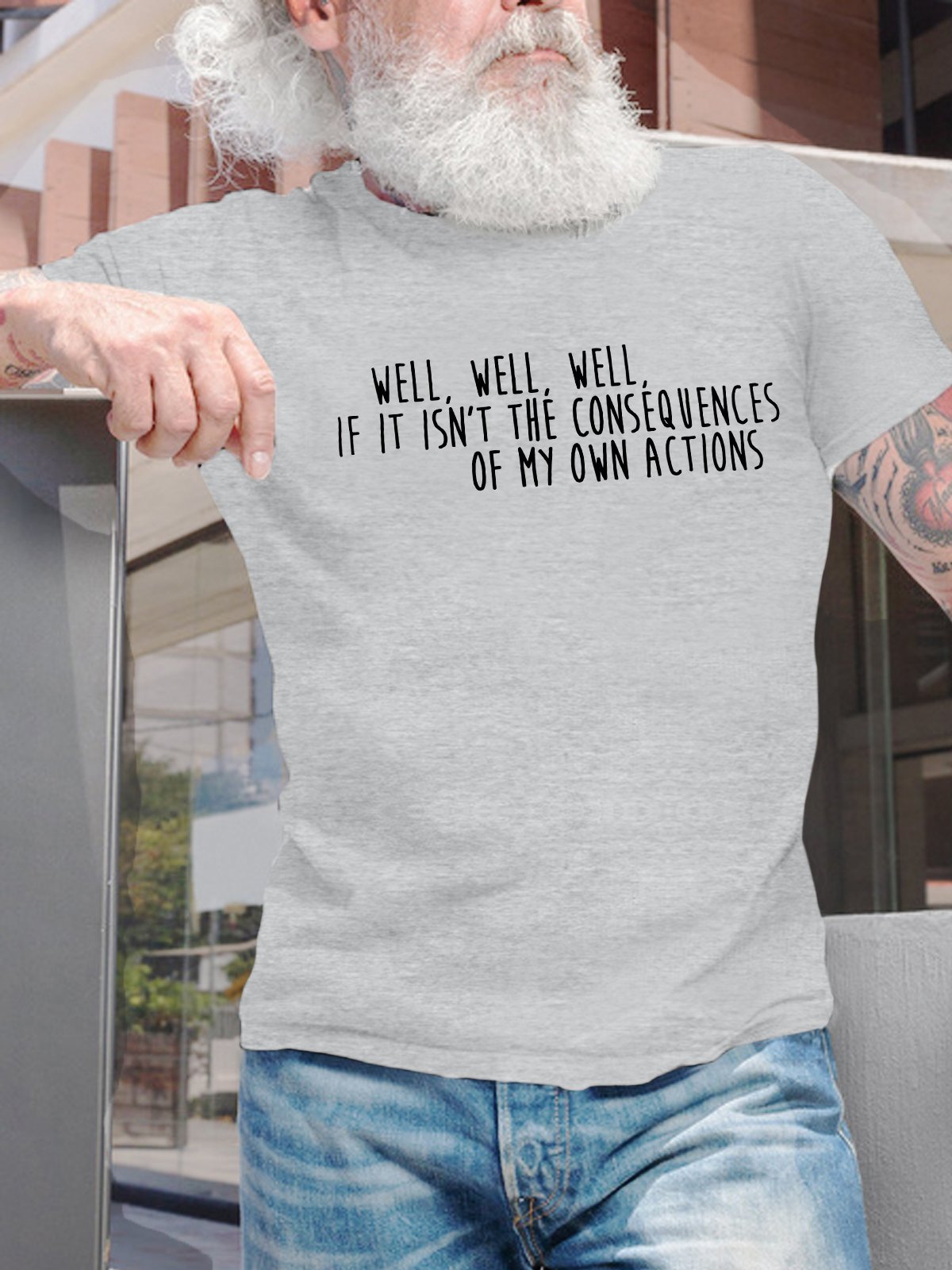 Men's Well Well Well If It Isn’T The Consequences Of My Own Actions Funny Graphic Printing Text Letters Cotton Casual T-Shirt