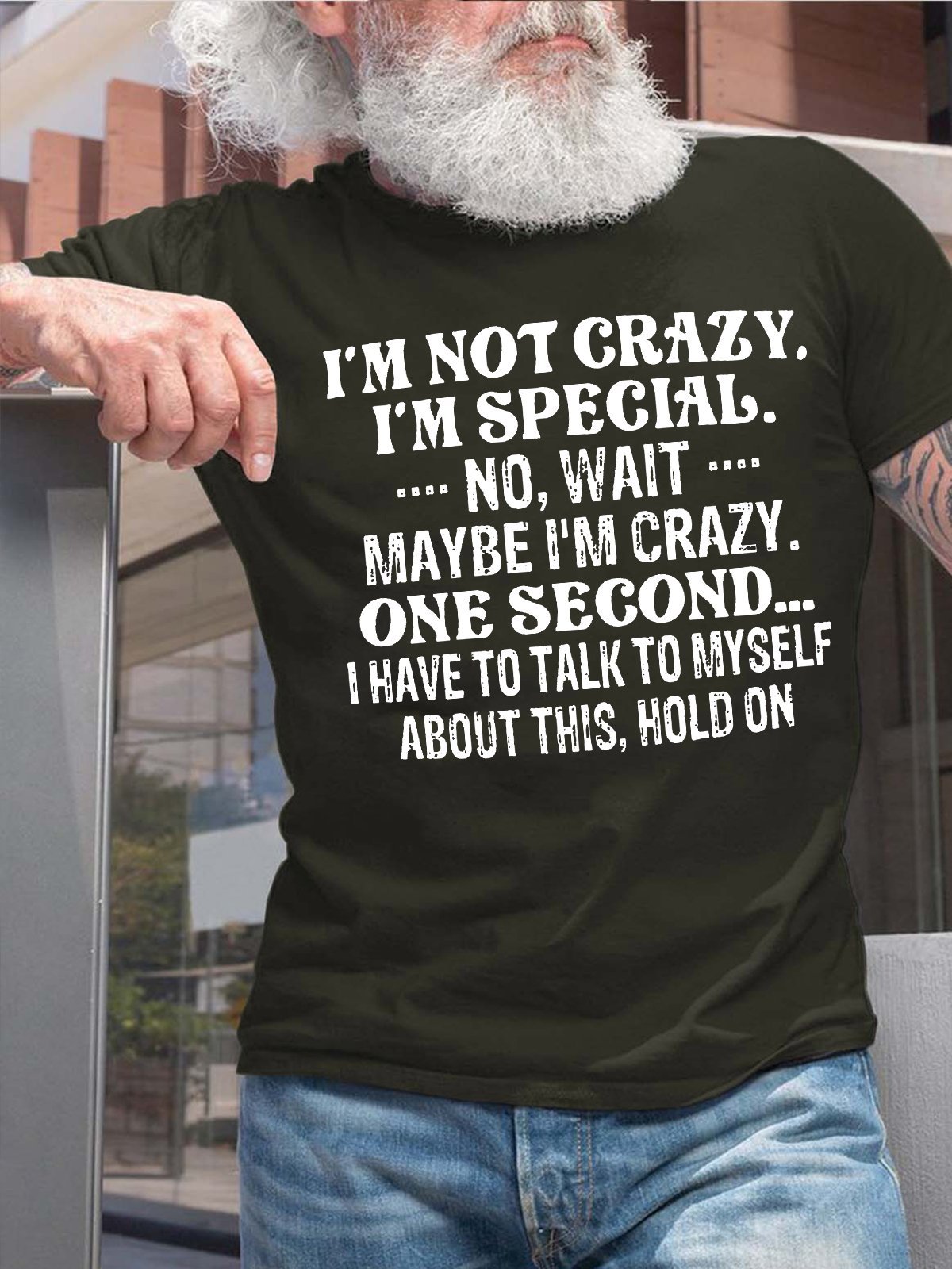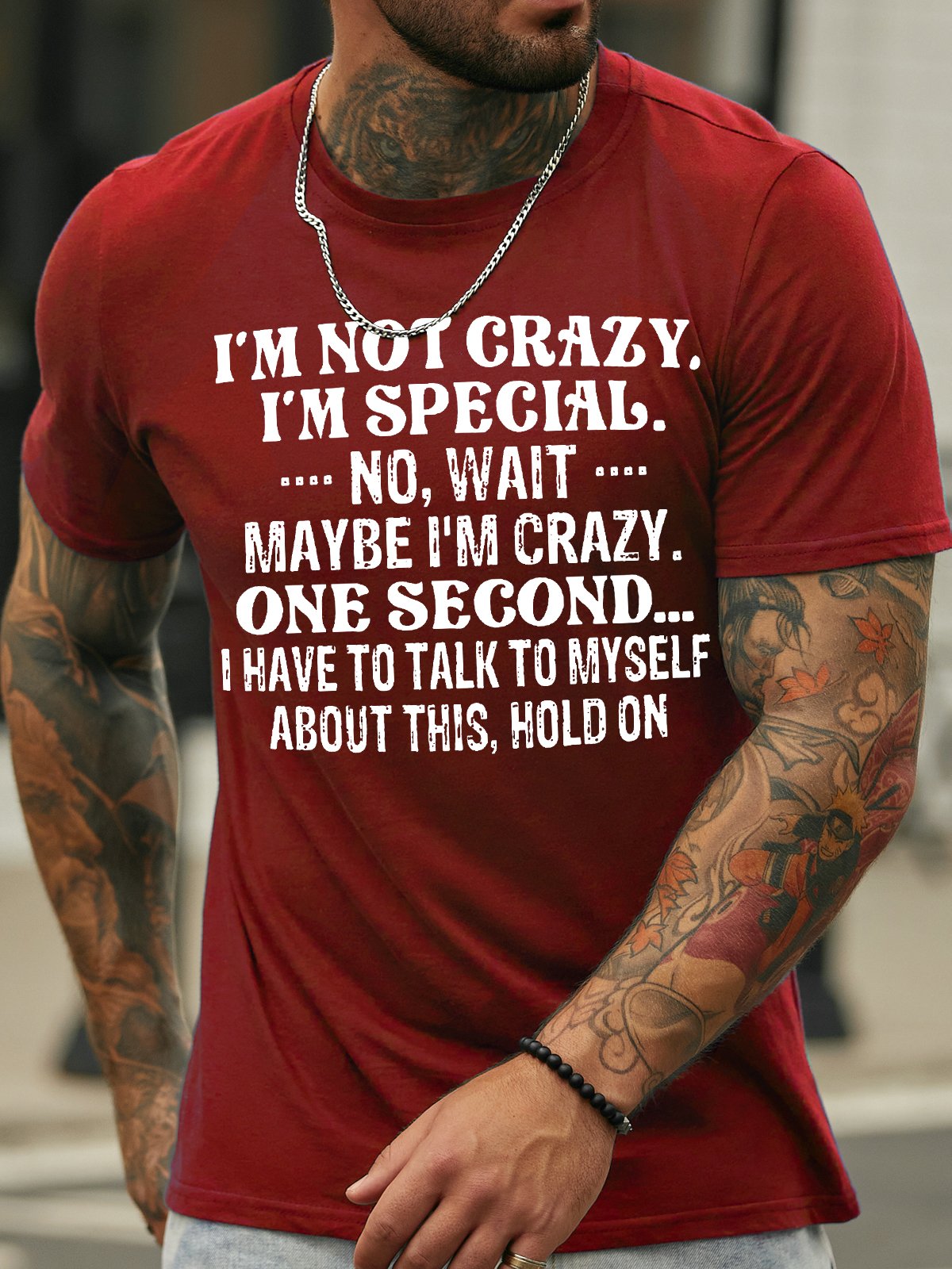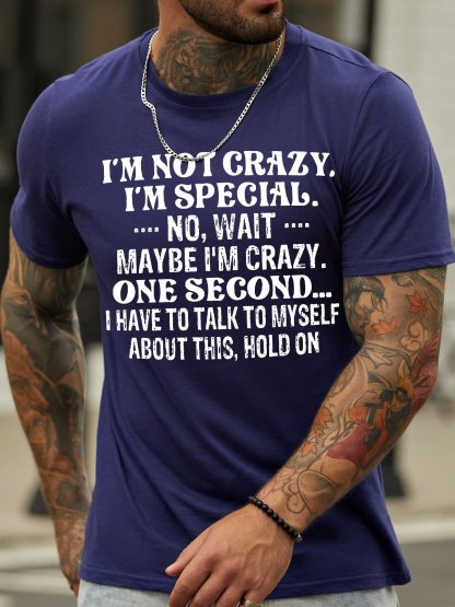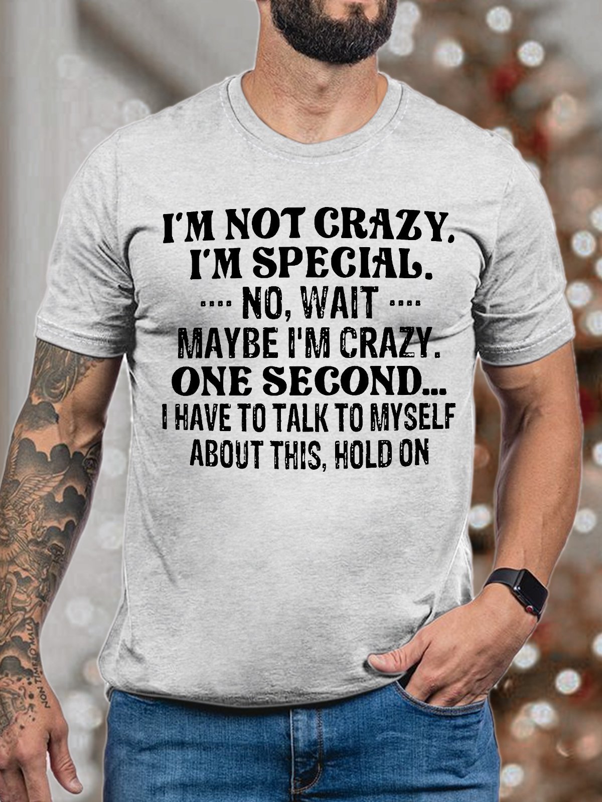 Men's I Am Not Crazy I Am Special No Wait Funny Graphic Print Text Letters Cotton Casual T-Shirt