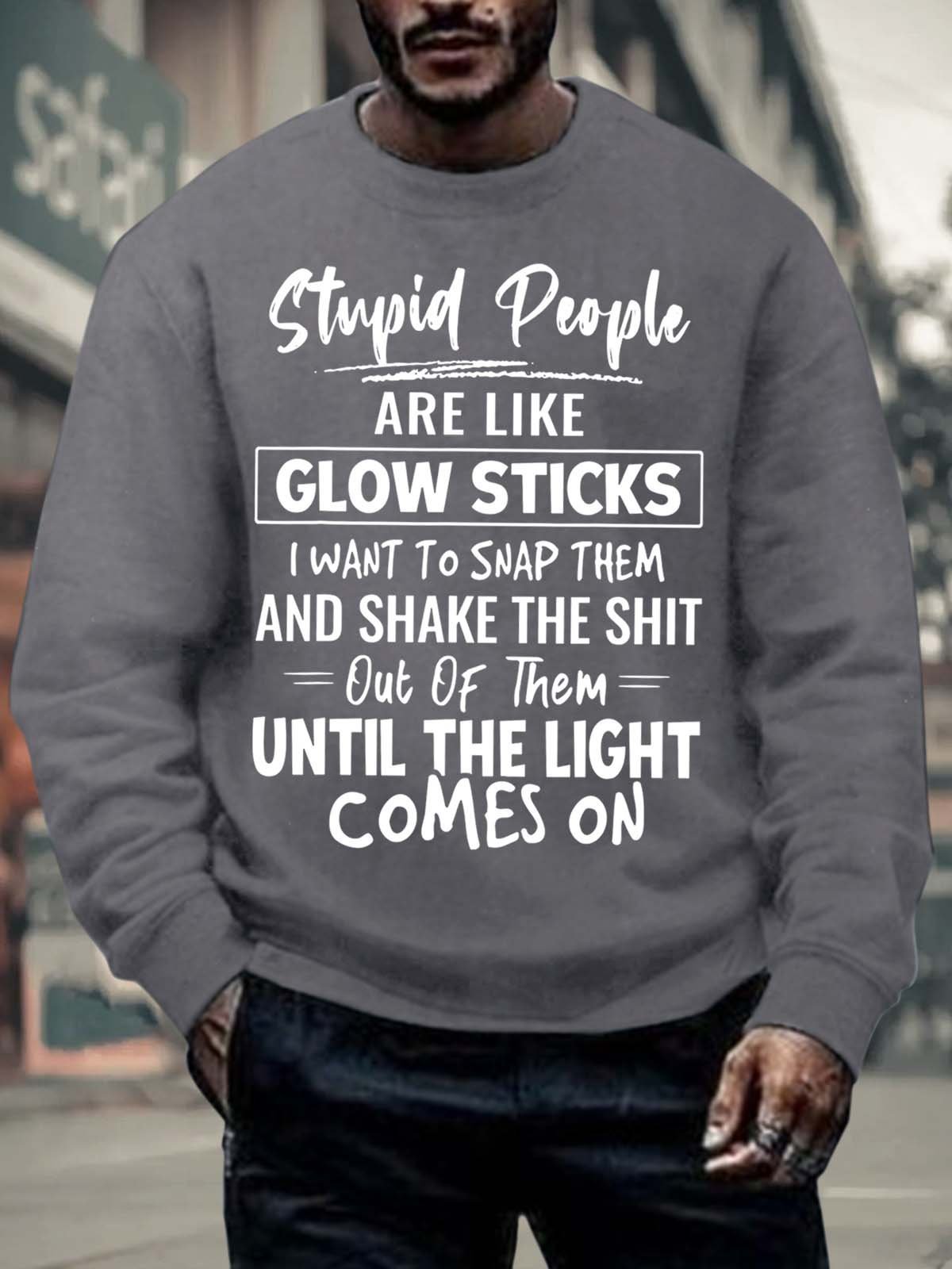 Men’s Stupid People Are Like Glow Sticks I Want To Snap Them Casual Regular Fit Text Letters Crew Neck Sweatshirt