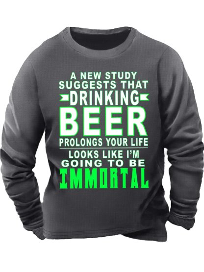 Men's Drinking Beer Going To Be Immortal Funny Graphic Print Crew Neck Text Letters Casual Sweatshirt