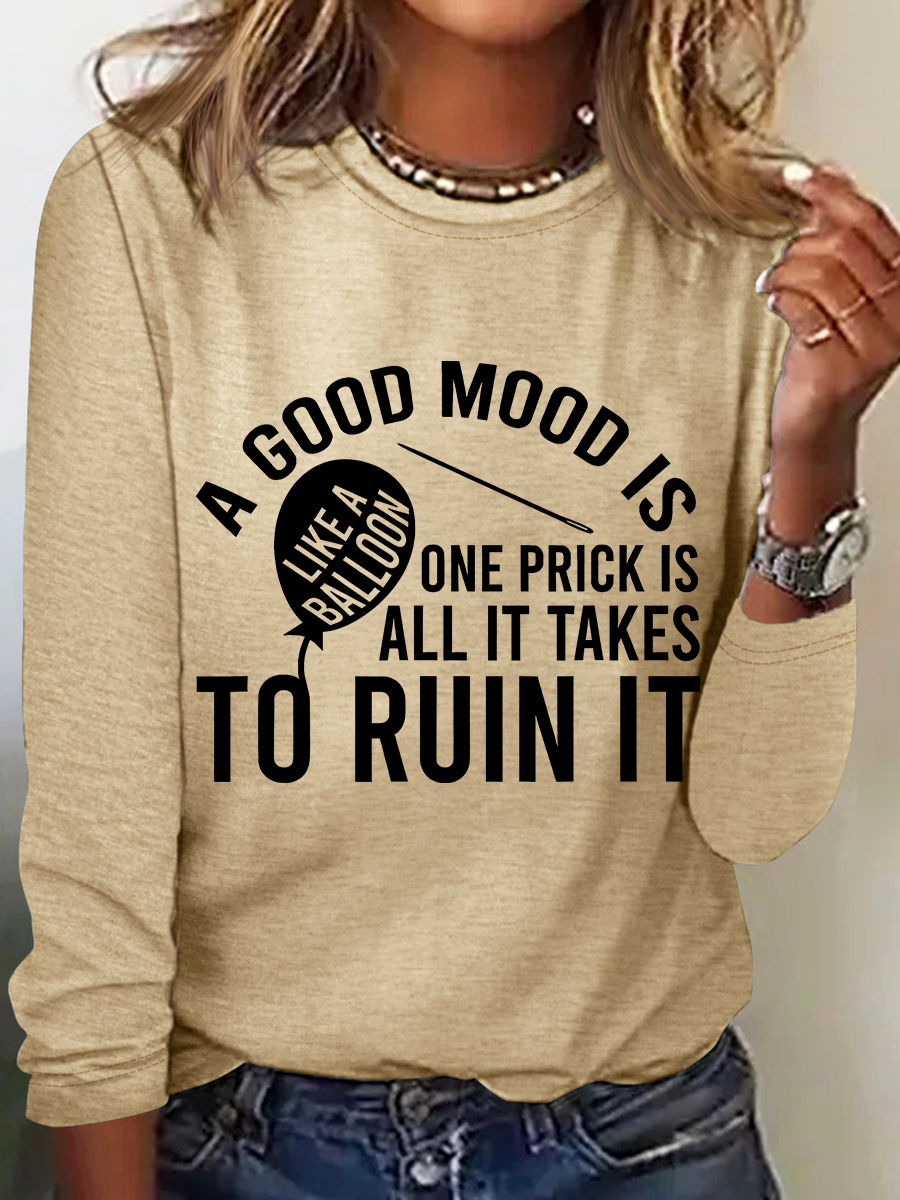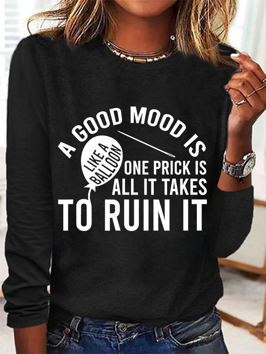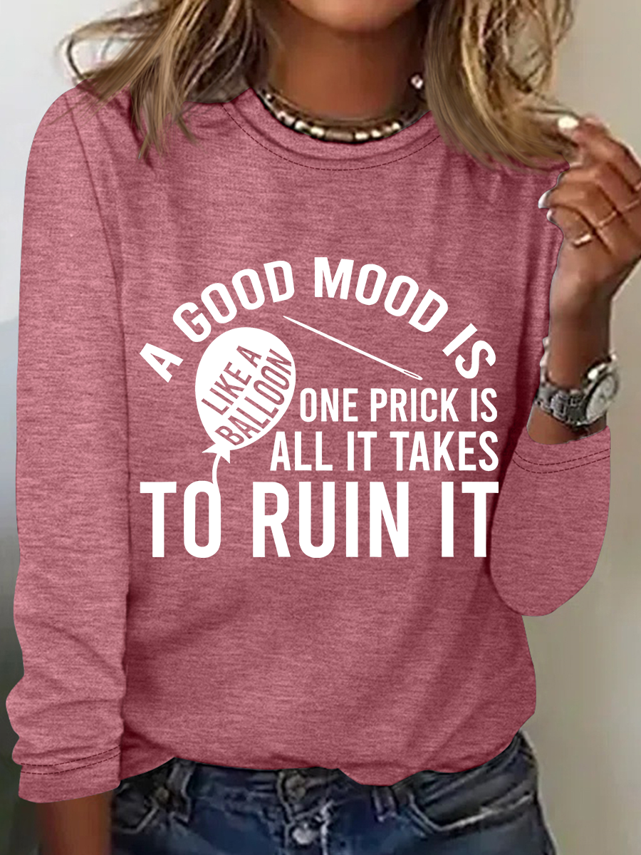 Good Mood Is Like A Balloon One Prick Is All It Takes To Ruin It Long Sleeve Shirt