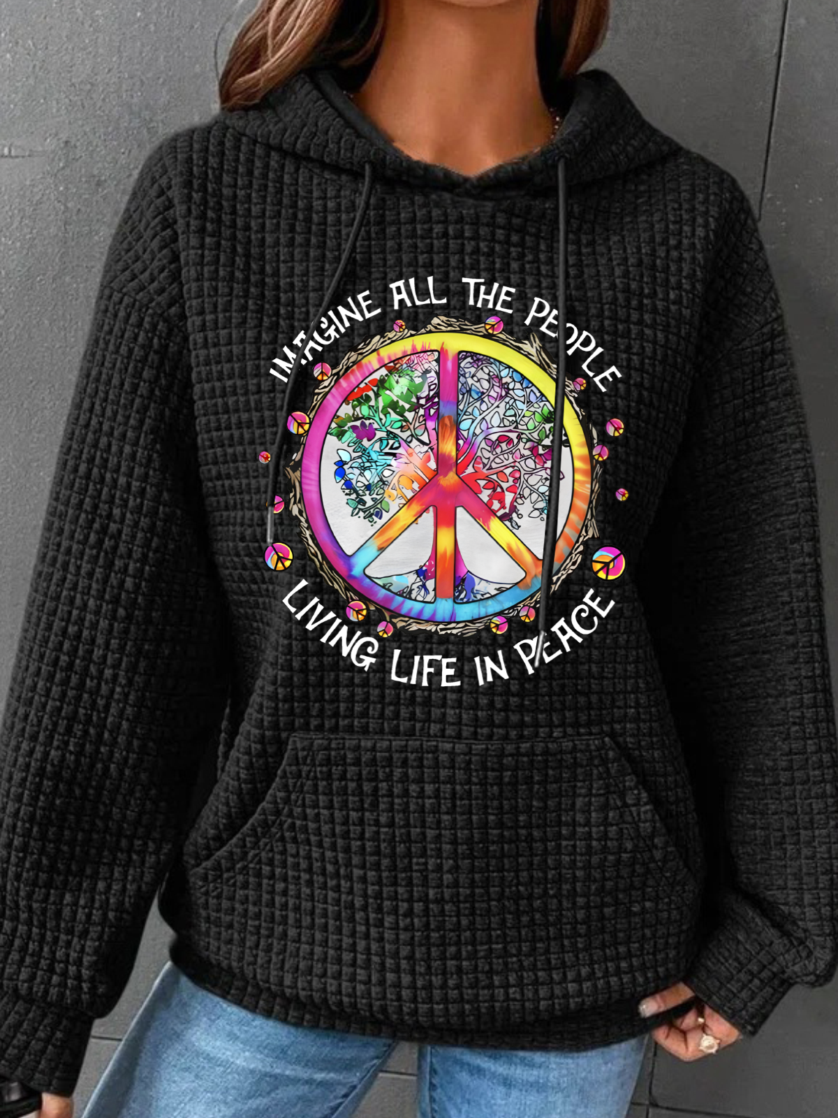Hippie All The People Simple Loose Hoodie