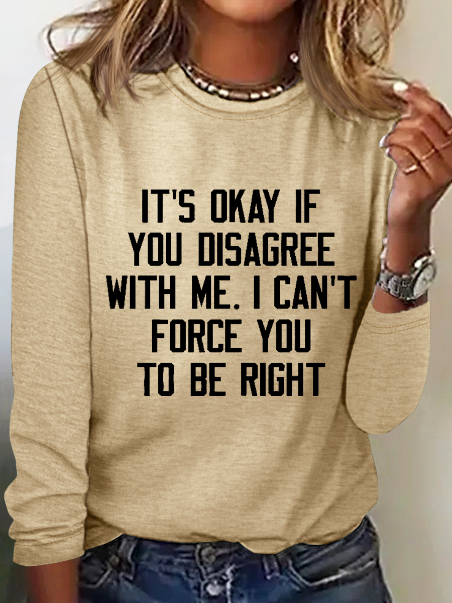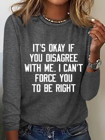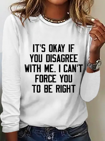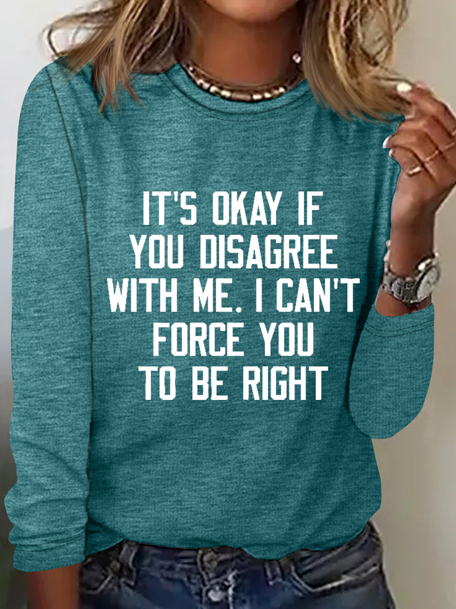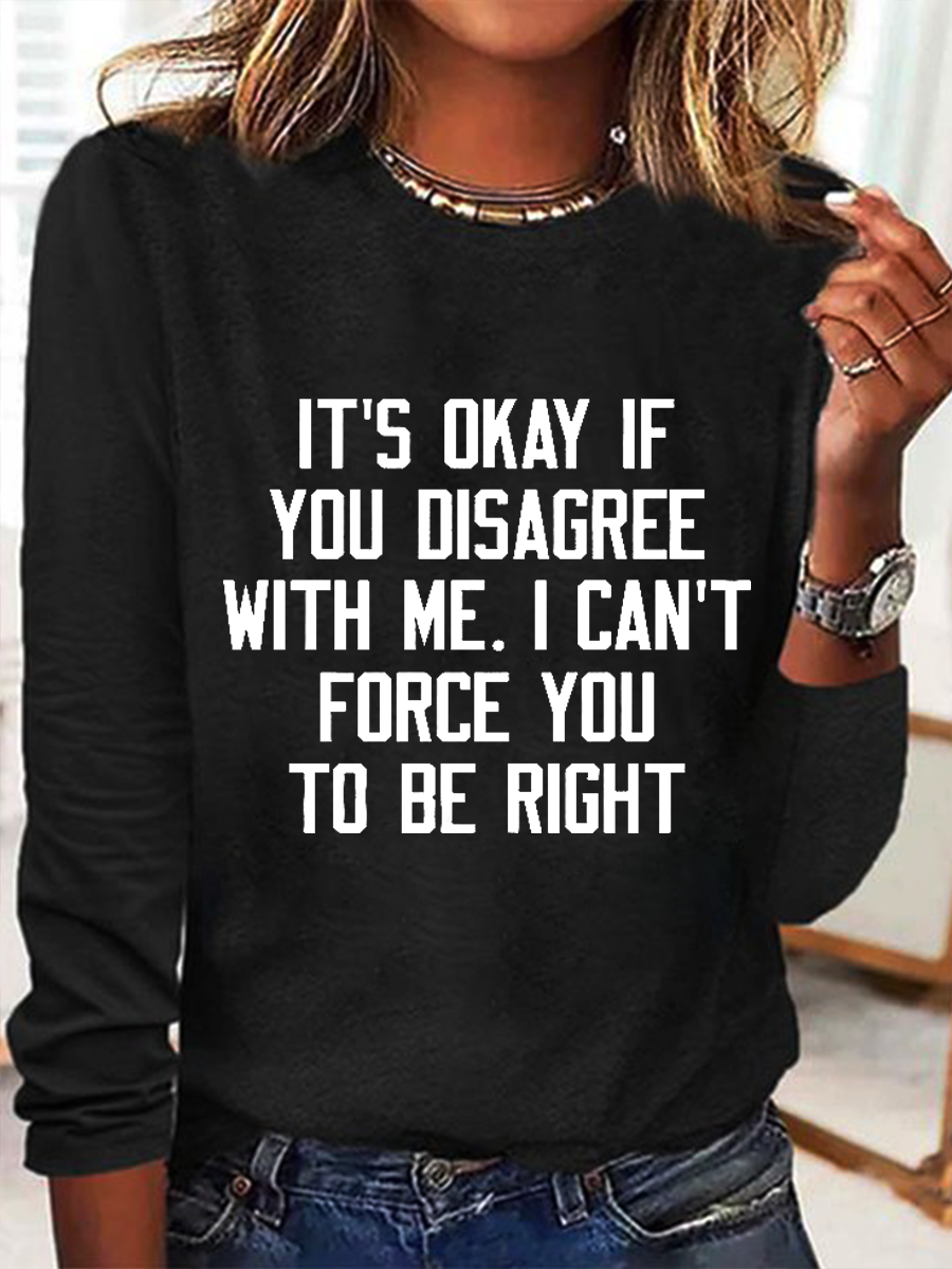 It's Ok If You Disagree With Me Cotton-Blend Crew Neck Casual Long Sleeve Shirt