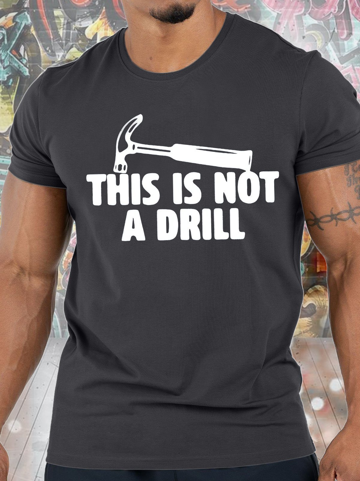 Men's This Is Not A Drill Funny Graphic Print Cotton Casual Text Letters Crew Neck T-Shirt