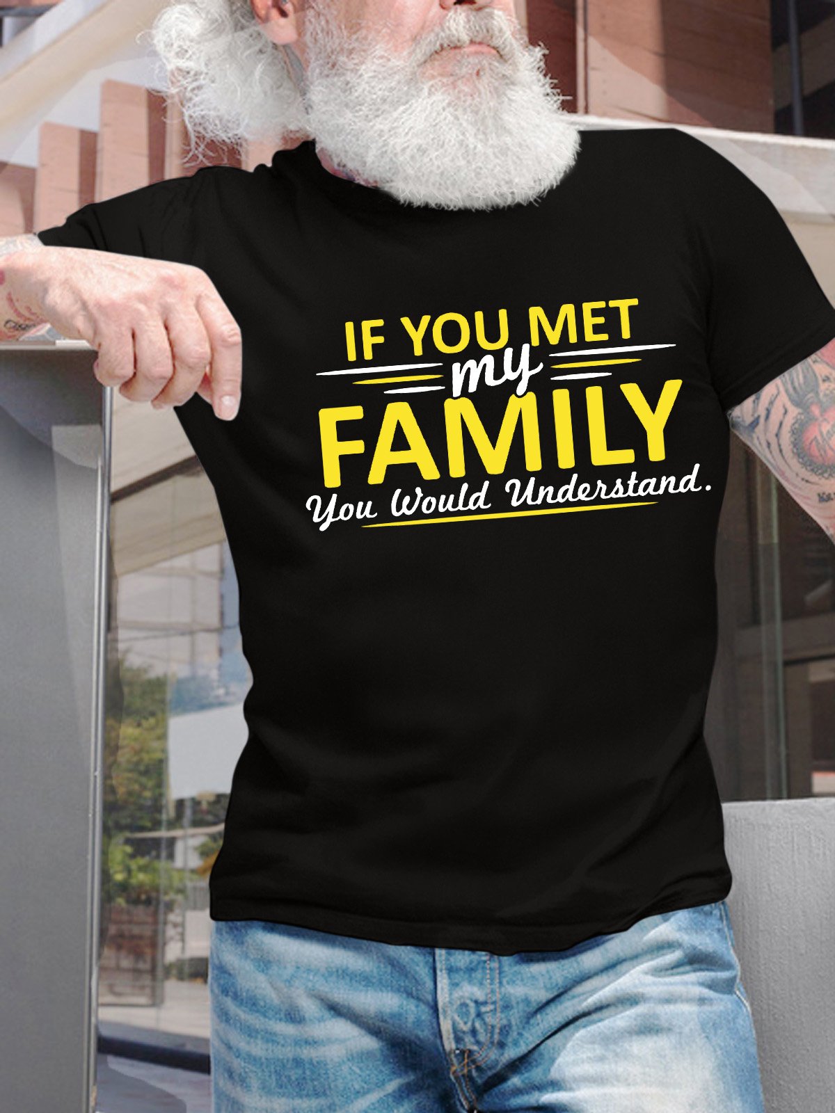 Men’s If You Met My Family You Would Understand Crew Neck Casual Regular Fit T-Shirt