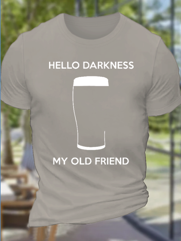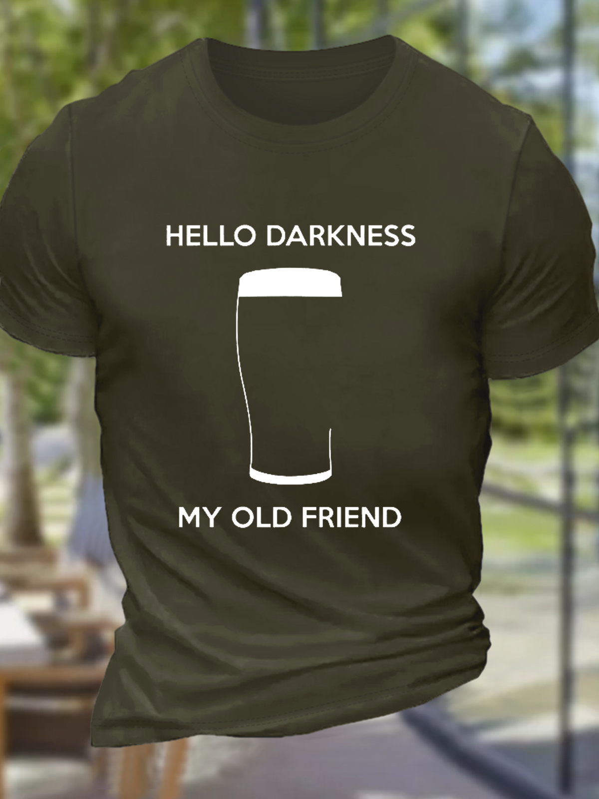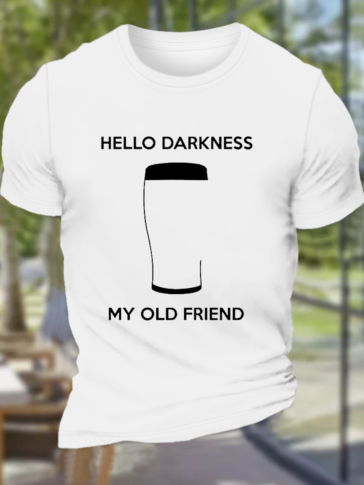 Men's Funny Saying Hello Darkness My Old Frien Cotton Casual T-Shirt