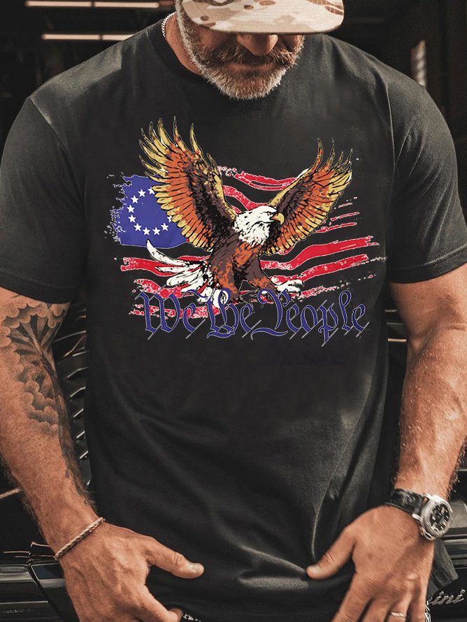We The People Casual Text Letters Cotton Crew Neck T-Shirt