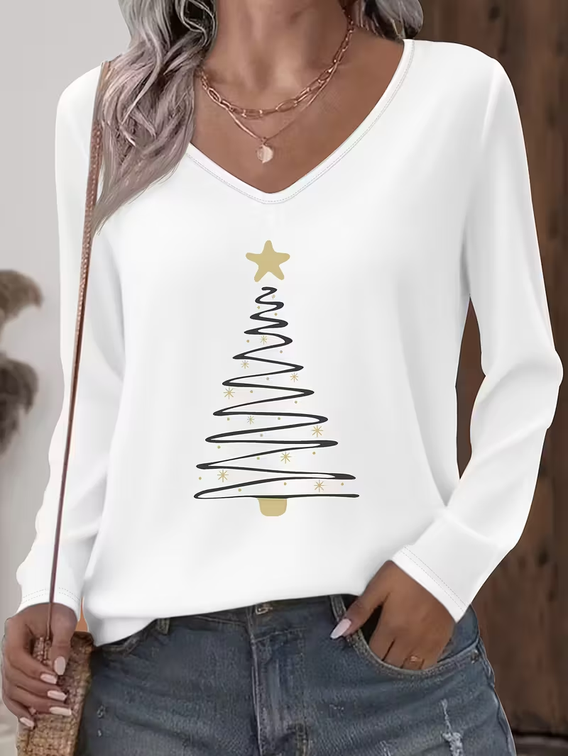 Women's Long Sleeve T-shirt Spring/Fall Green Christmas Printing Jersey V Neck Daily Going Out Casual Top