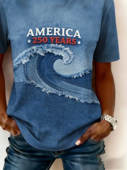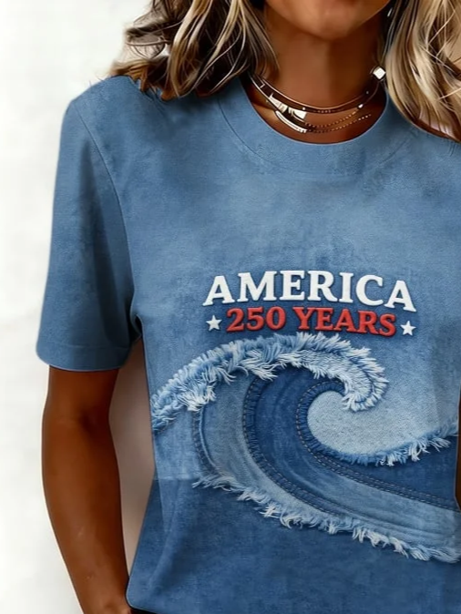 Women's Short Sleeve T-shirt Summer Blue Text Letters Printing Jersey Crew Neck Daily Going Out Casual Top