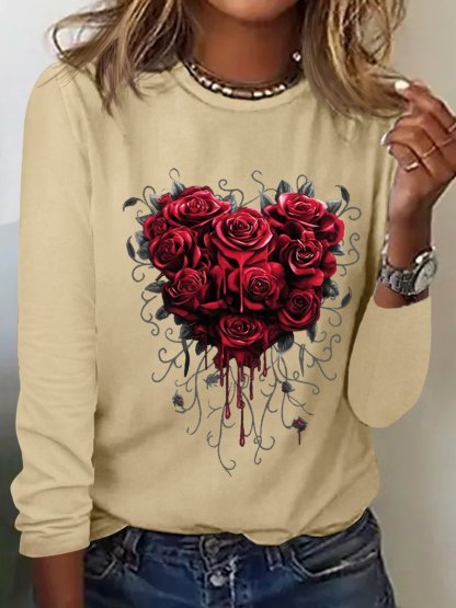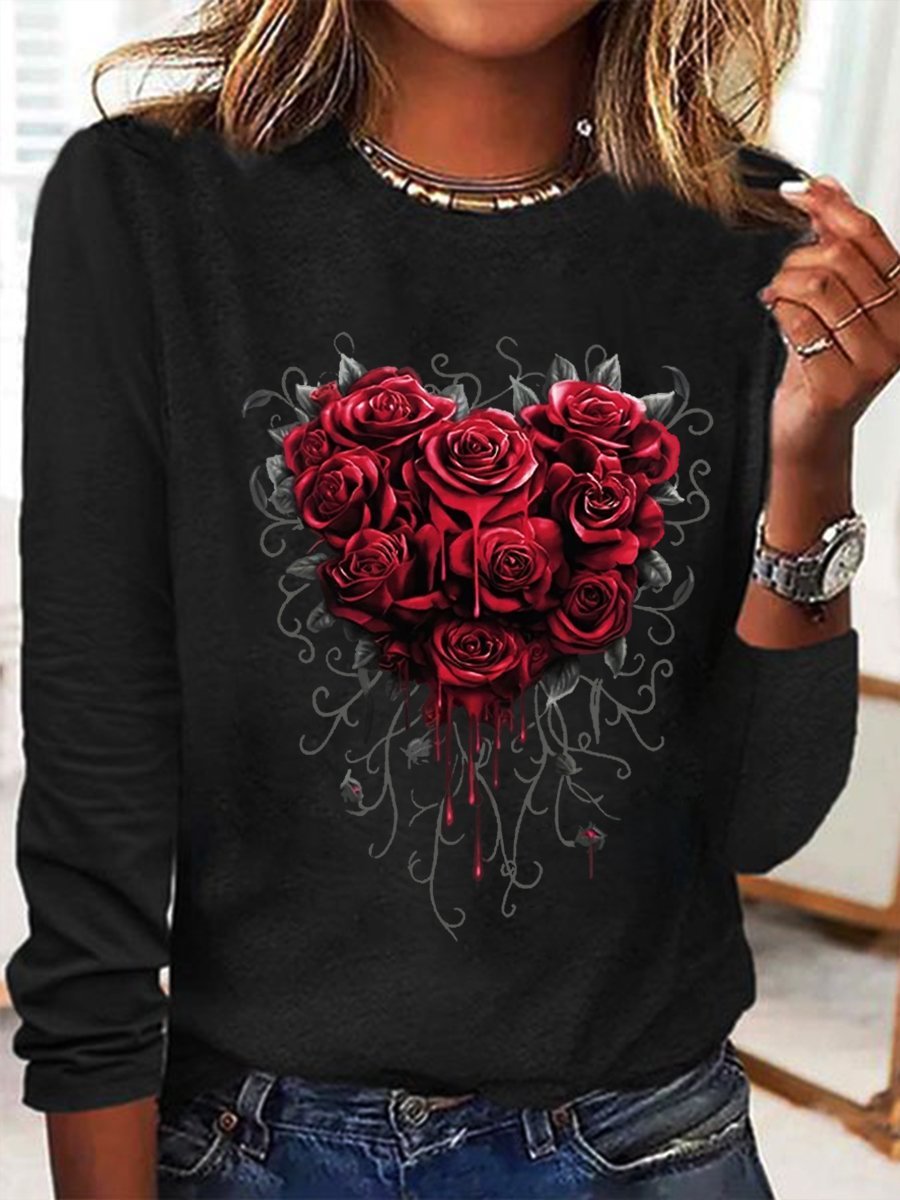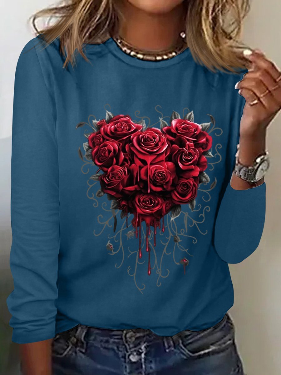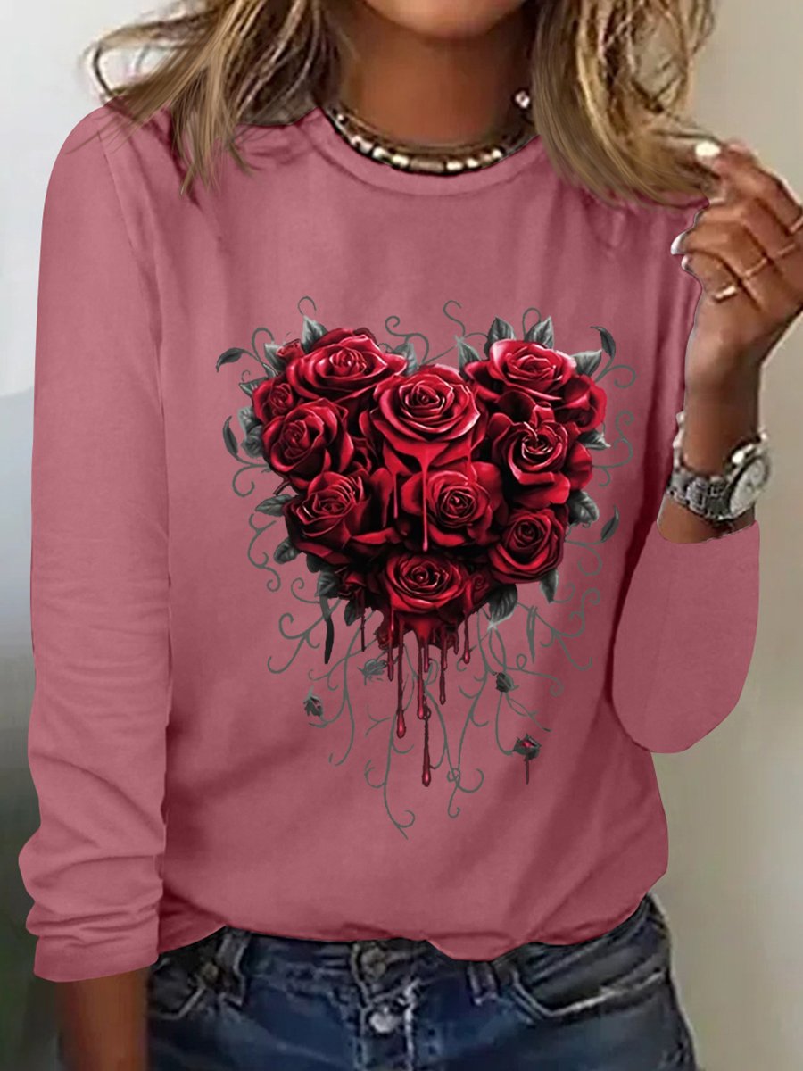 Women's Heart Rose Simple Cotton-Blend Long Sleeve Top