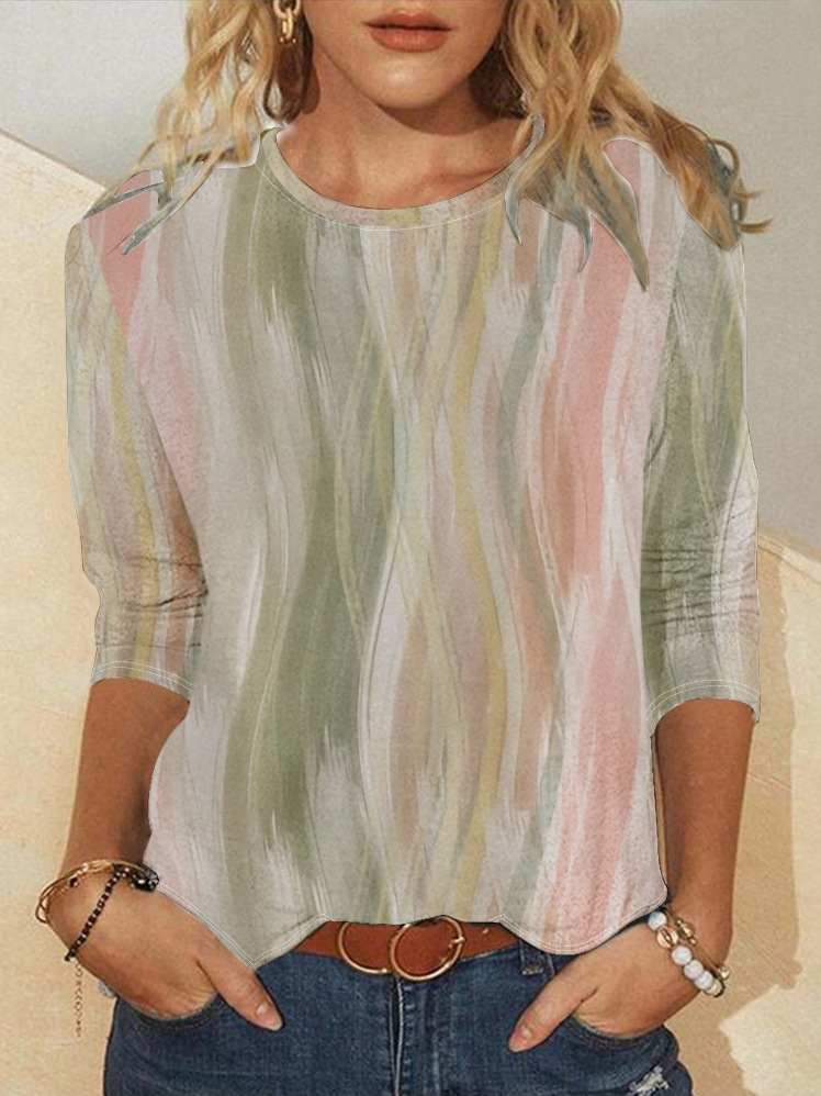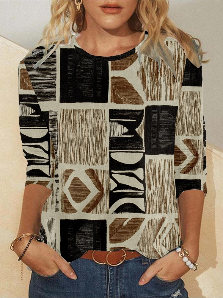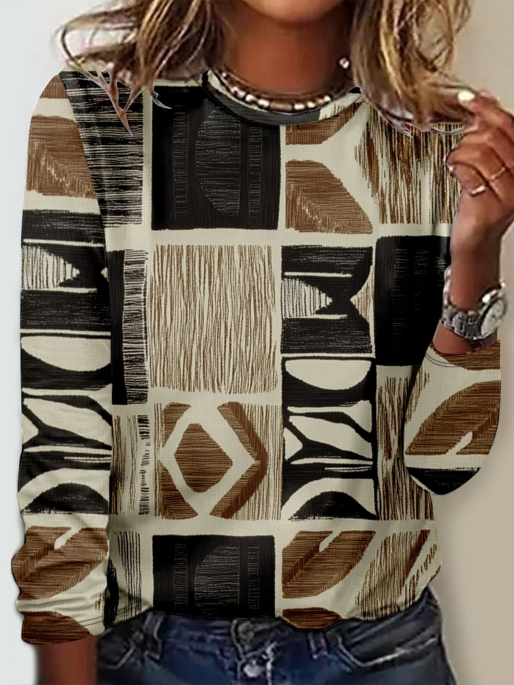 Casual Crew Neck Geometric Long Sleeve Shirt