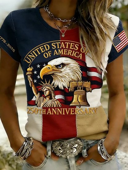 3D Printing Vintage Crew Neck Eagle Old Glory Jersey T-Shirt